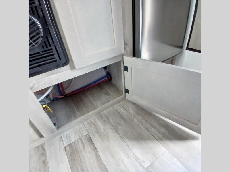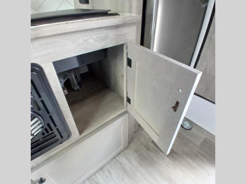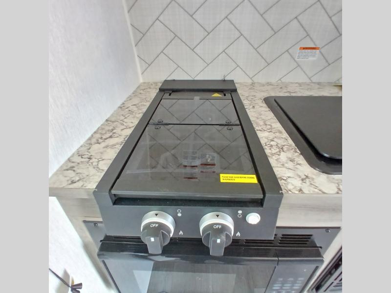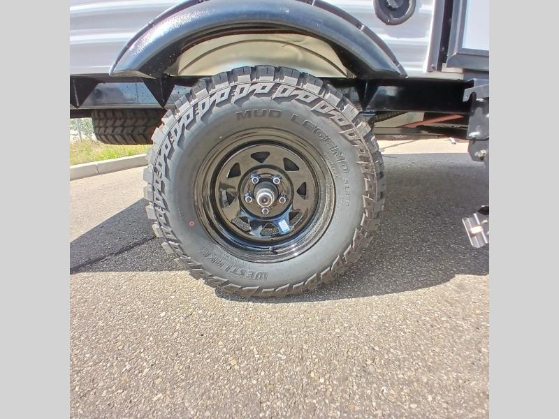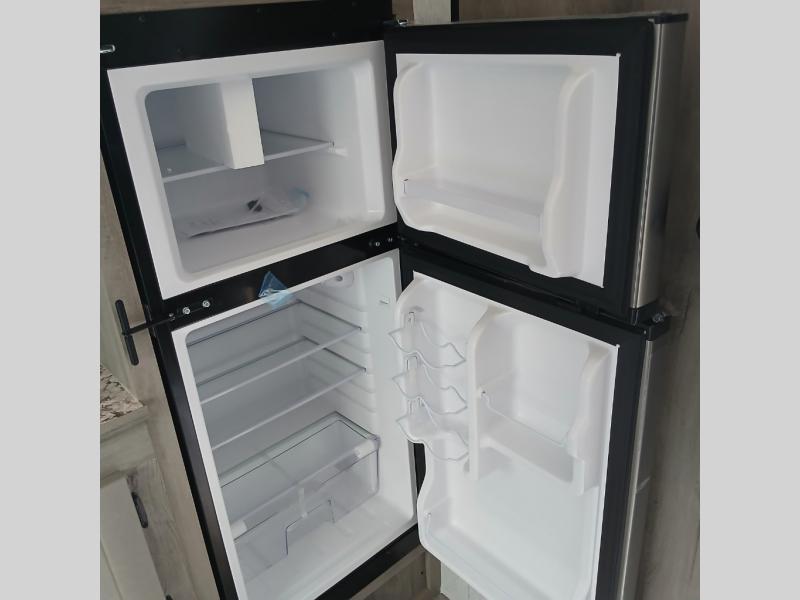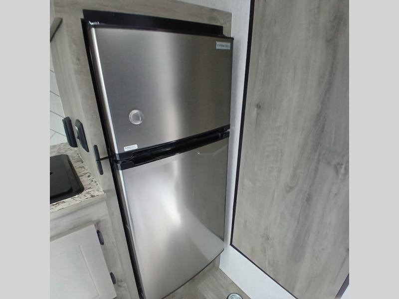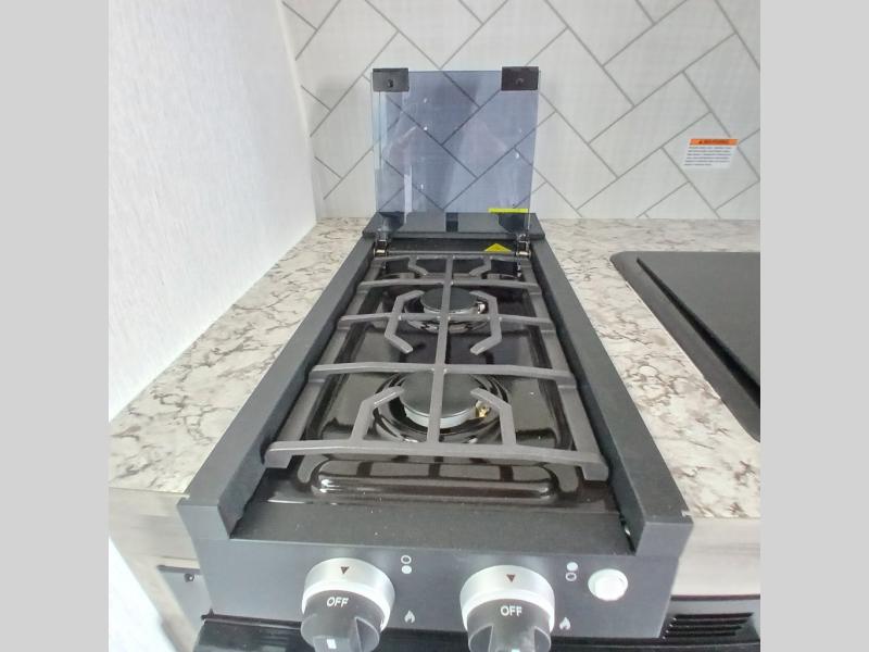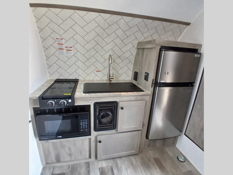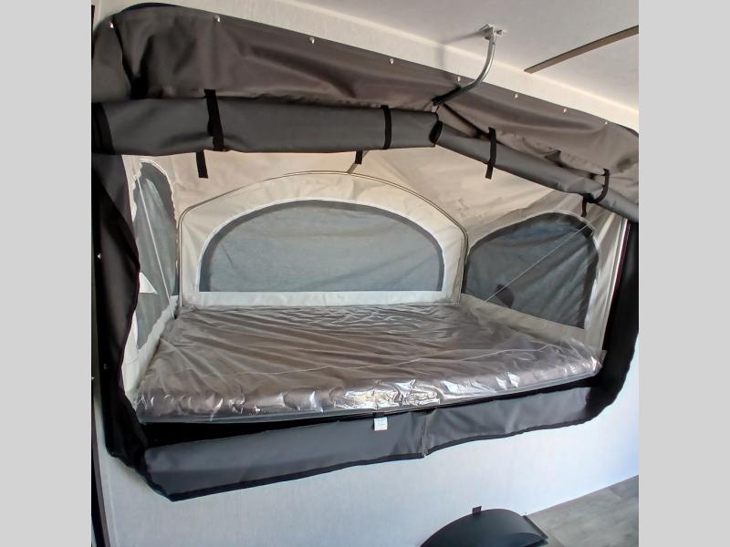 Get ready for a great camping experience where you can take along your favorite ride-on toys, kayaks, or other items that you may not normally have room to load as this toy hauler features a 6' 9" cargo width and 10' 11" cargo length. Once unloaded, set up with the rear bed that will make for a great night's rest. The front of this unit is shared with the wet bath and kitchen. Here, you can make meals on the two burner stove or in the microwave oven, and there is a refrigerator for perishables. And when the optional tent bed is added on this model, you can sleep more campers!