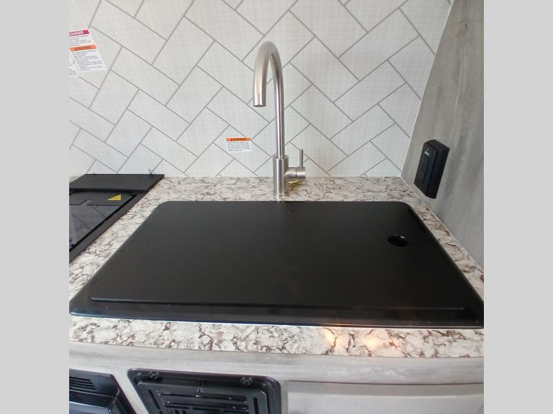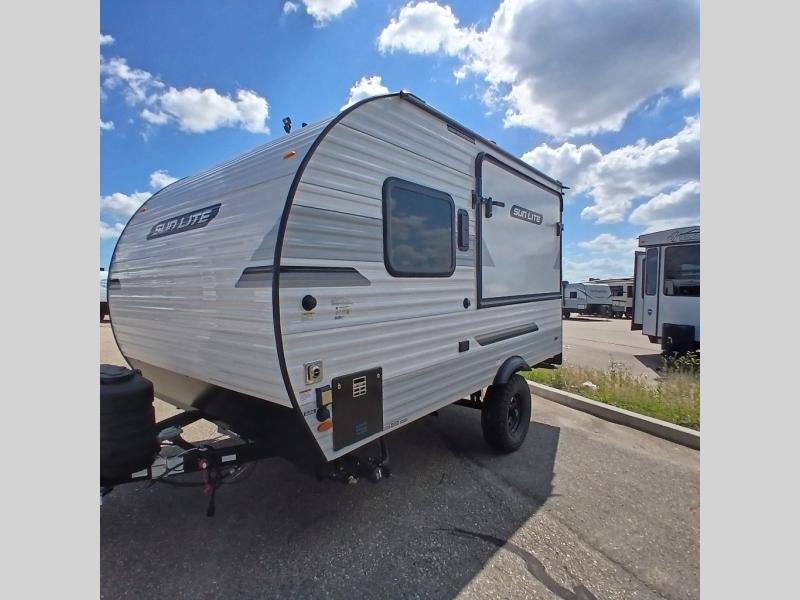 You can trust the build and enjoy your experience with any one of these Sunset Park RV Sun Lite travel trailers or toy haulers! Their aerodynamic profile is not only easy to haul, but also saves on fuel. They are built to withstand years of traveling even though they are lightweight with a diamond plate rock guard, a one piece PVC roof membrane, Dexter Spring-Leaf axles, and tinted safety glass windows. Some comfort standards you are sure to enjoy are the two-burner stove top range with hood, light and fan, plus the refrigerator and microwave, and an outside shower to help keep the dirt outdoors where it belongs.