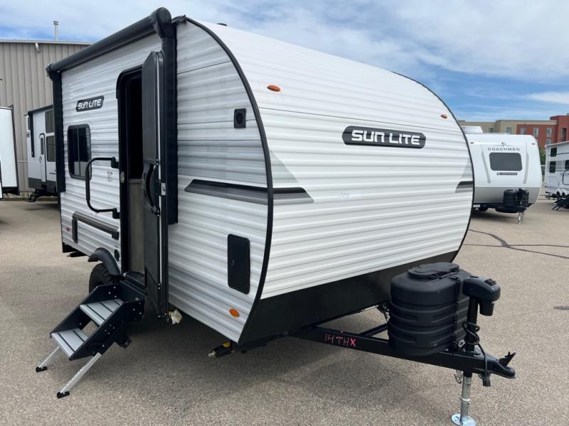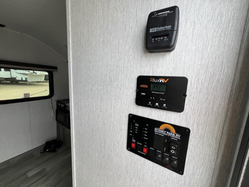 You can trust the build and enjoy your experience with any one of these Sunset Park RV Sun Lite travel trailers or toy haulers! Their aerodynamic profile is not only easy to haul, but also saves on fuel. They are built to withstand years of traveling even though they are lightweight with a diamond plate rock guard, a one piece PVC roof membrane, Dexter Spring-Leaf axles, and tinted safety glass windows. Some comfort standards you are sure to enjoy are the two-burner stove top range with hood, light and fan, plus the refrigerator and microwave, and an outside shower to help keep the dirt outdoors where it belongs.