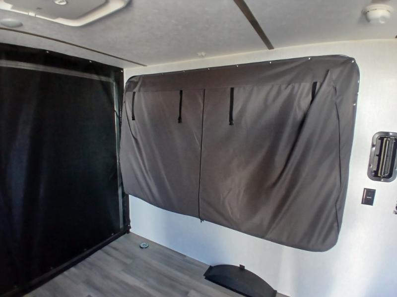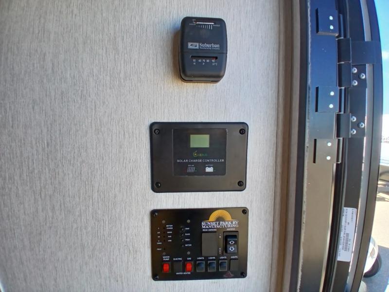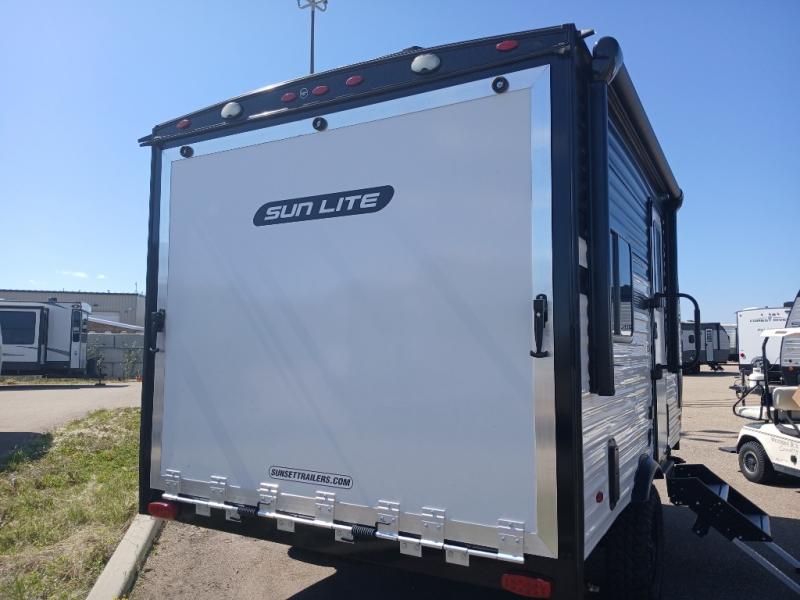 You can trust the build and enjoy your experience with any one of these Sunset Park RV Sun Lite travel trailers or toy haulers! Their aerodynamic profile is not only easy to haul, but also saves on fuel. They are built to withstand years of traveling even though they are lightweight with a diamond plate rock guard, a one piece PVC roof membrane, Dexter Spring-Leaf axles, and tinted safety glass windows. Some comfort standards you are sure to enjoy are the two-burner stove top range with hood, light and fan, plus the refrigerator and microwave, and an outside shower to help keep the dirt outdoors where it belongs.