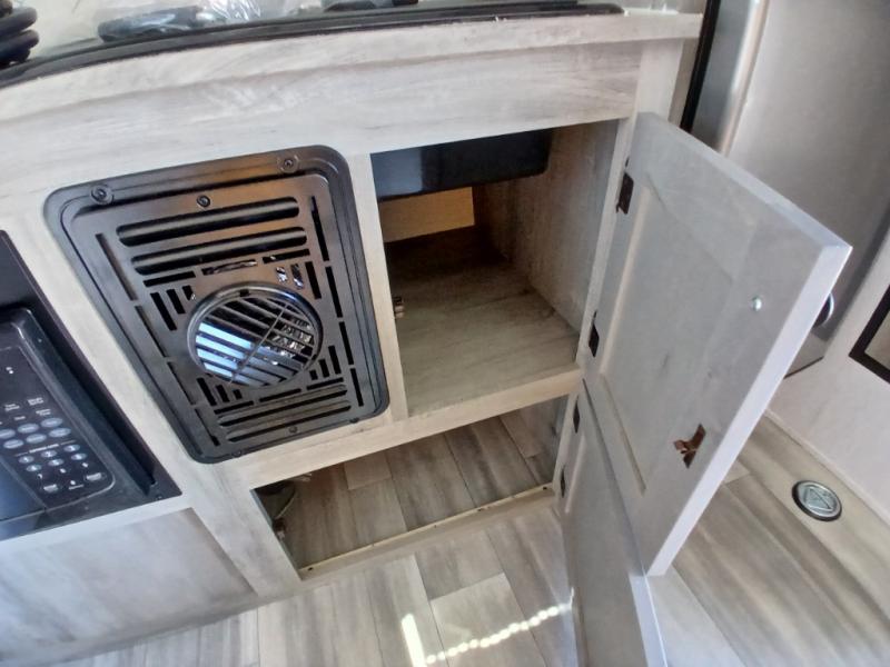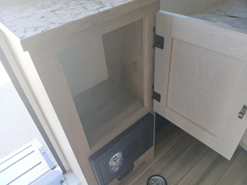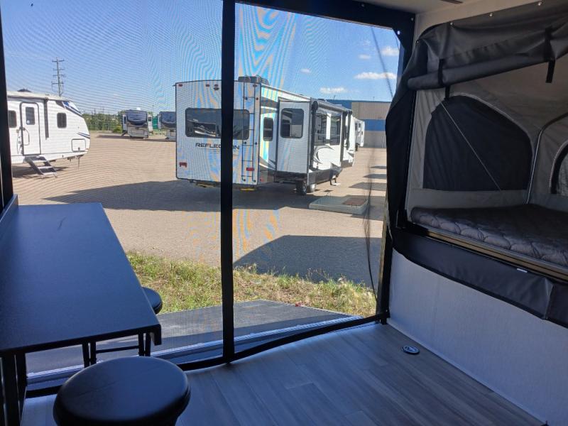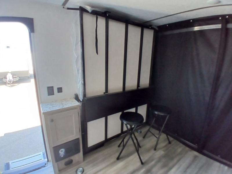 Get ready for a great camping experience where you can take along your favorite ride-on toys, kayaks, or other items that you may not normally have room to load as this toy hauler features a 6' 9" cargo width and 10' 11" cargo length. Once unloaded, set up with the rear bed that will make for a great night's rest. The front of this unit is shared with the wet bath and kitchen. Here, you can make meals on the two burner stove or in the microwave oven, and there is a refrigerator for perishables. And when the optional tent bed is added on this model, you can sleep more campers!