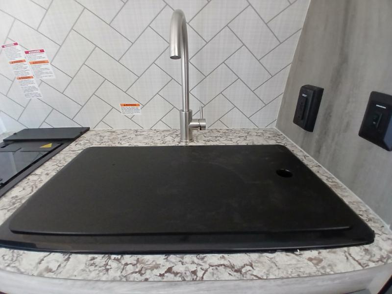 You can trust the build and enjoy your experience with any one of these Sunset Park RV Sun Lite travel trailers or toy haulers! Their aerodynamic profile is not only easy to haul, but also saves on fuel. They are built to withstand years of traveling even though they are lightweight with a diamond plate rock guard, a one piece PVC roof membrane, Dexter Spring-Leaf axles, and tinted safety glass windows. Some comfort standards you are sure to enjoy are the two-burner stove top range with hood, light and fan, plus the refrigerator and microwave, and an outside shower to help keep the dirt outdoors where it belongs.
