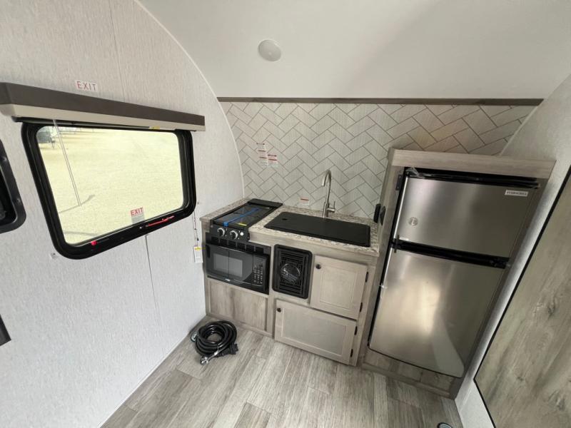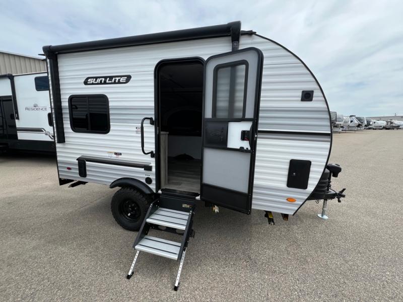 You can trust the build and enjoy your experience with any one of these Sunset Park RV Sun Lite travel trailers or toy haulers! Their aerodynamic profile is not only easy to haul, but also saves on fuel. They are built to withstand years of traveling even though they are lightweight with a diamond plate rock guard, a one piece PVC roof membrane, Dexter Spring-Leaf axles, and tinted safety glass windows. Some comfort standards you are sure to enjoy are the two-burner stove top range with hood, light and fan, plus the refrigerator and microwave, and an outside shower to help keep the dirt outdoors where it belongs.