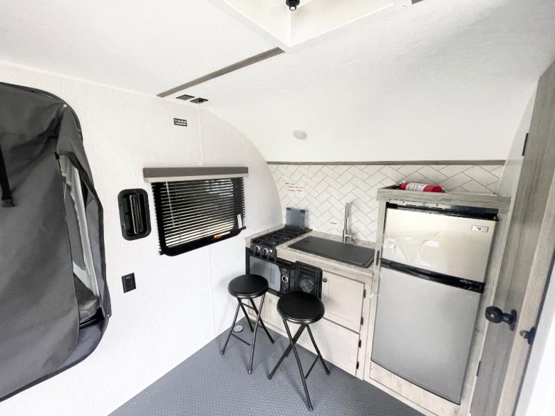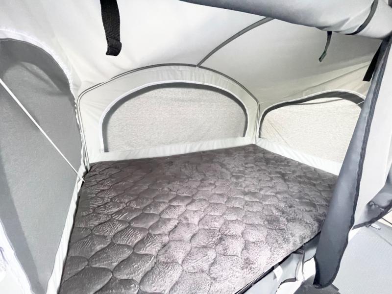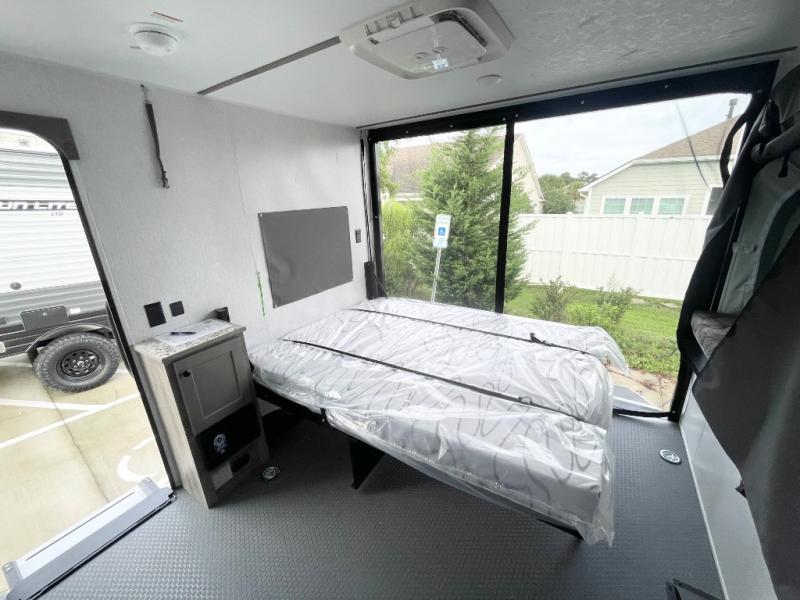 Get ready for a great camping experience where you can take along your favorite ride-on toys, kayaks, or other items that you may not normally have room to load as this toy hauler features a 6' 9" cargo width and 10' 11" cargo length. Once unloaded, set up with the rear bed that will make for a great night's rest. The front of this unit is shared with the wet bath and kitchen. Here, you can make meals on the two burner stove or in the microwave oven, and there is a refrigerator for perishables. And when the optional tent bed is added on this model, you can sleep more campers!