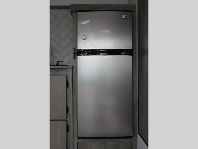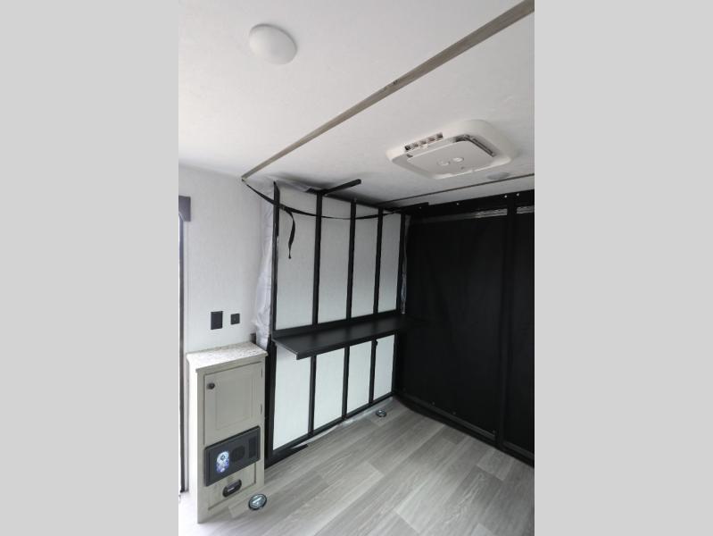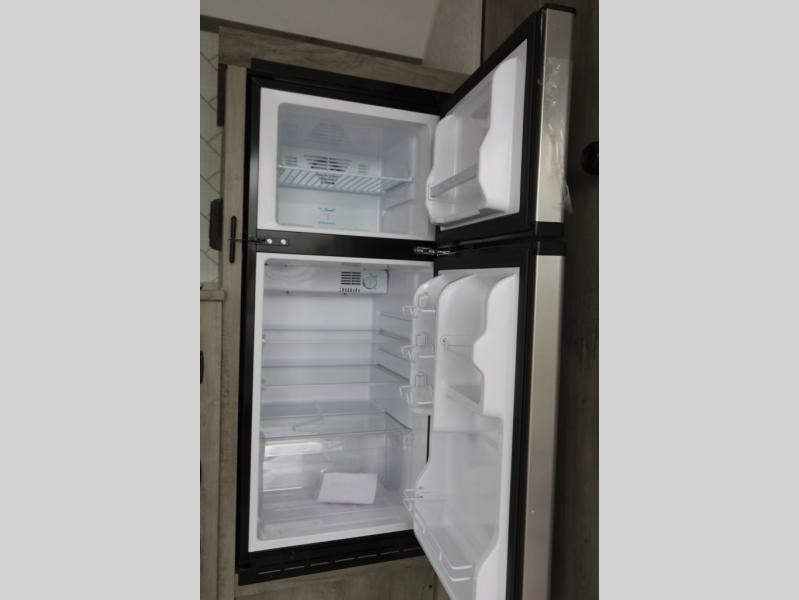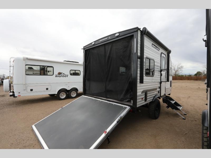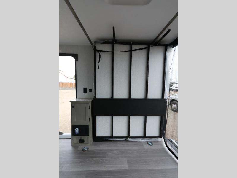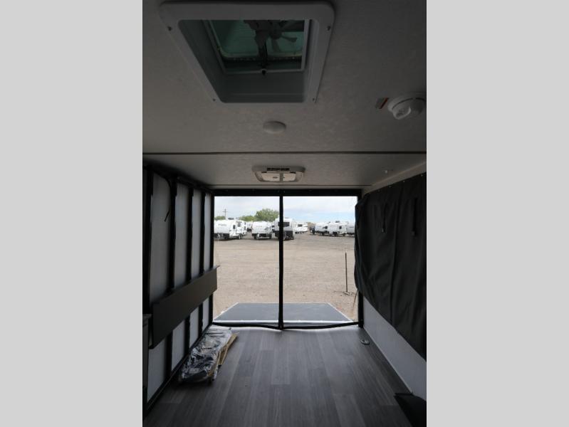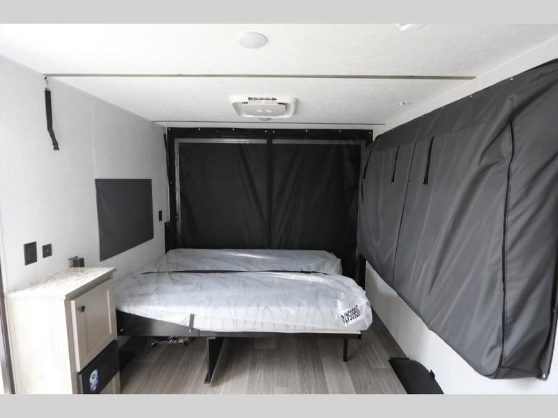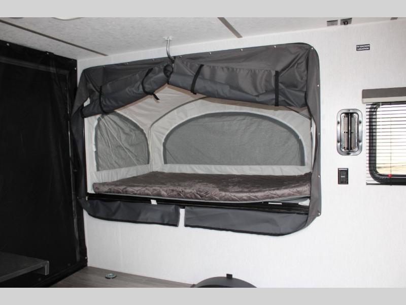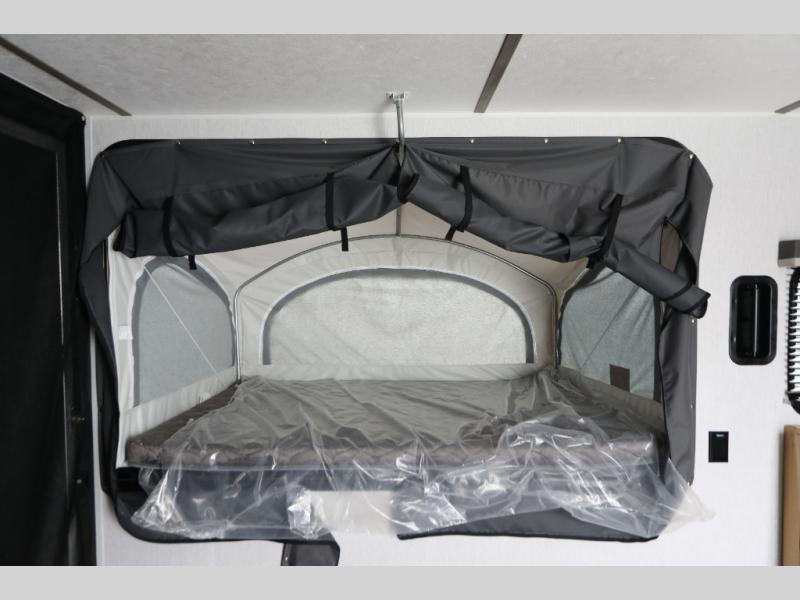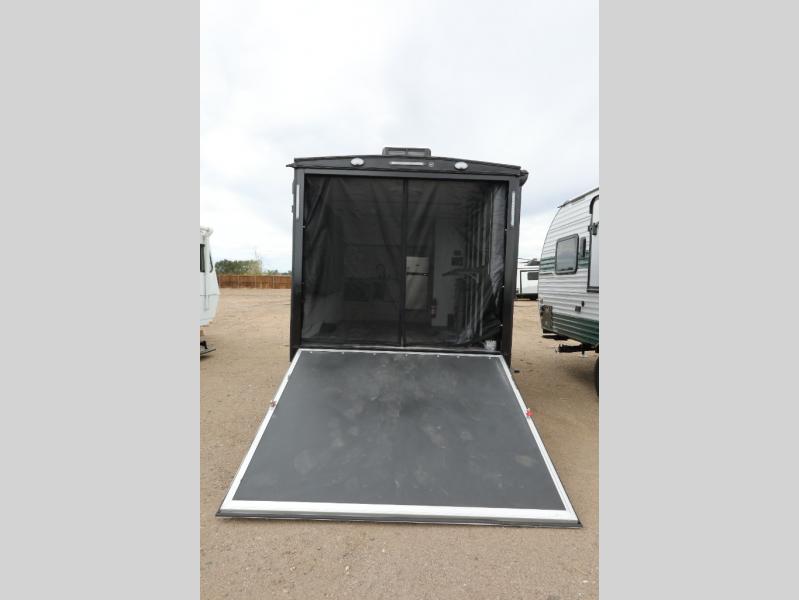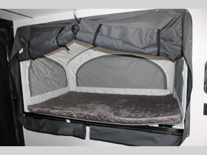 Get ready for a great camping experience where you can take along your favorite ride-on toys, kayaks, or other items that you may not normally have room to load as this toy hauler features a 6' 9" cargo width and 10' 11" cargo length. Once unloaded, set up with the rear bed that will make for a great night's rest. The front of this unit is shared with the wet bath and kitchen. Here, you can make meals on the two burner stove or in the microwave oven, and there is a refrigerator for perishables. And when the optional tent bed is added on this model, you can sleep more campers!