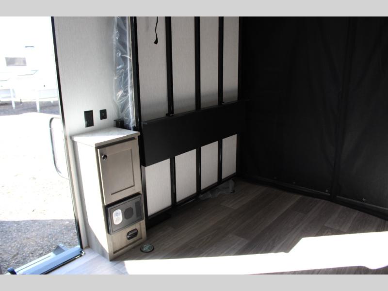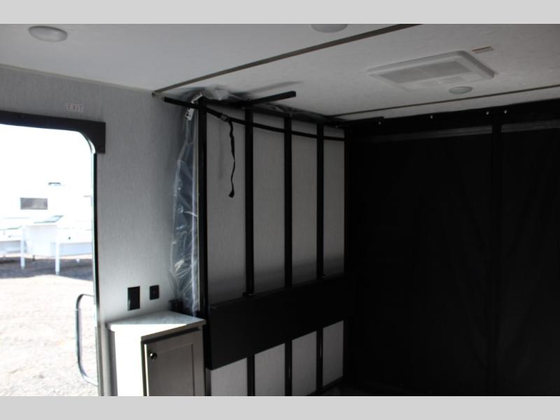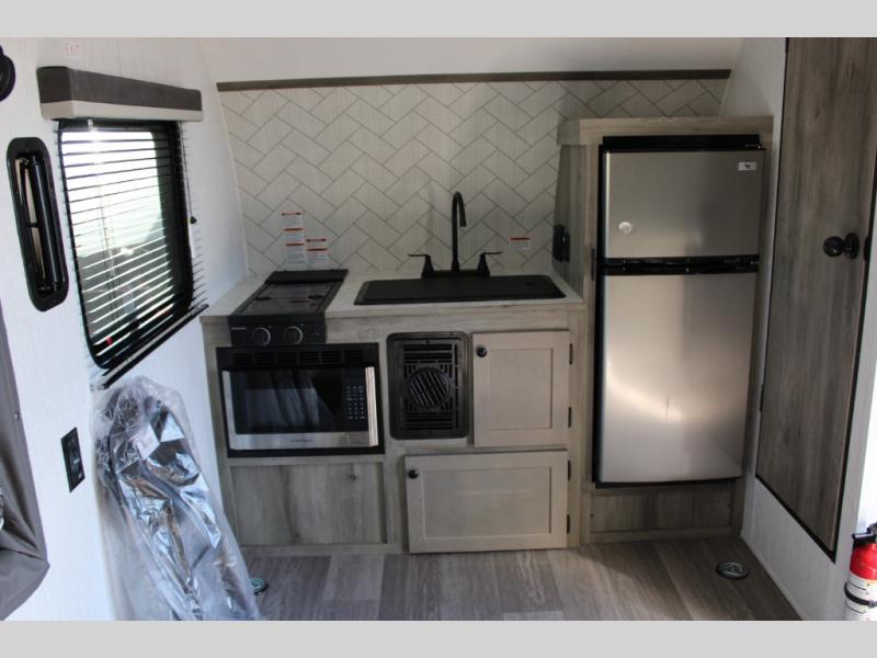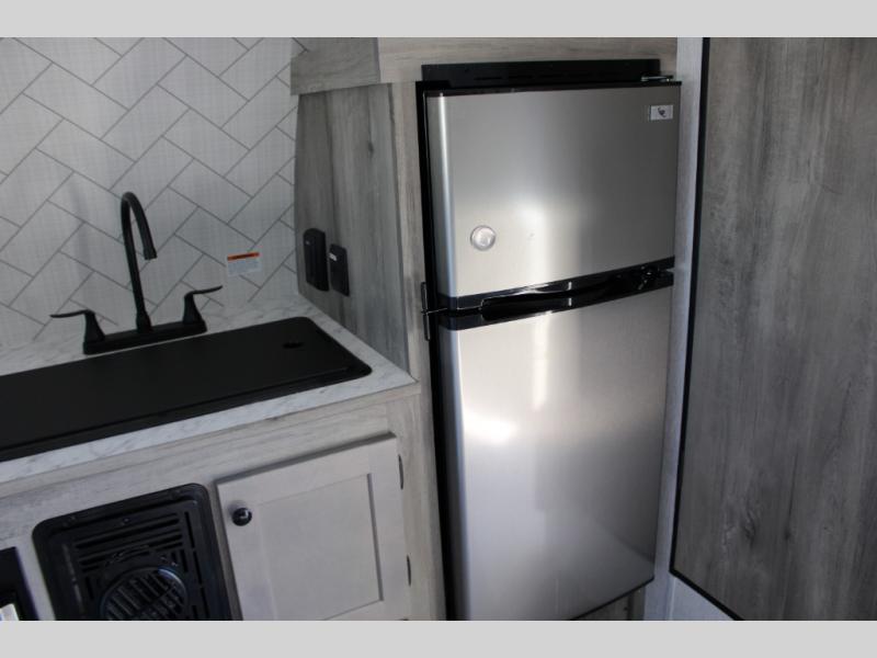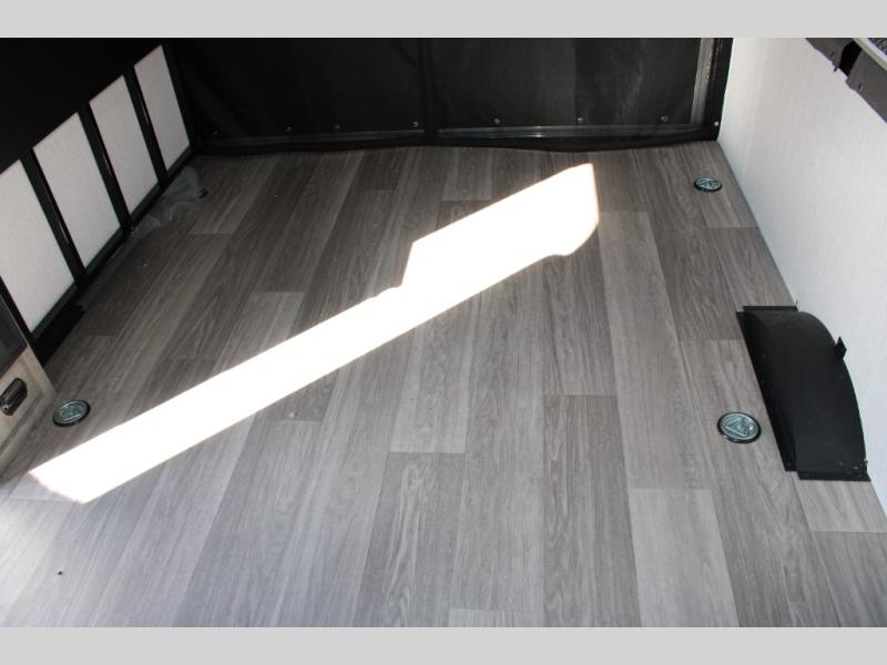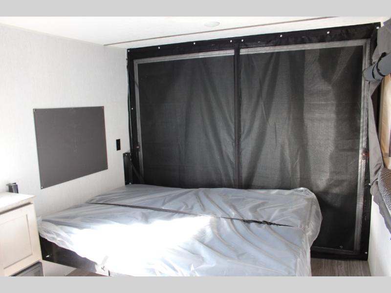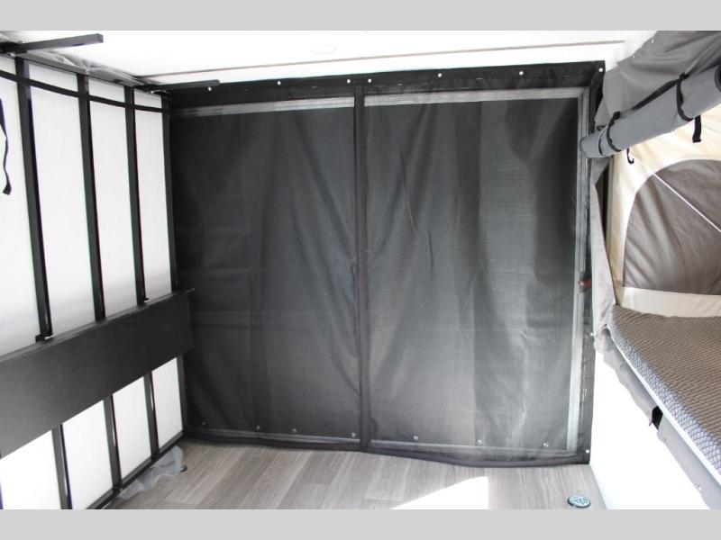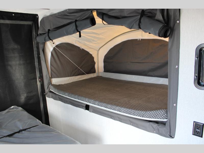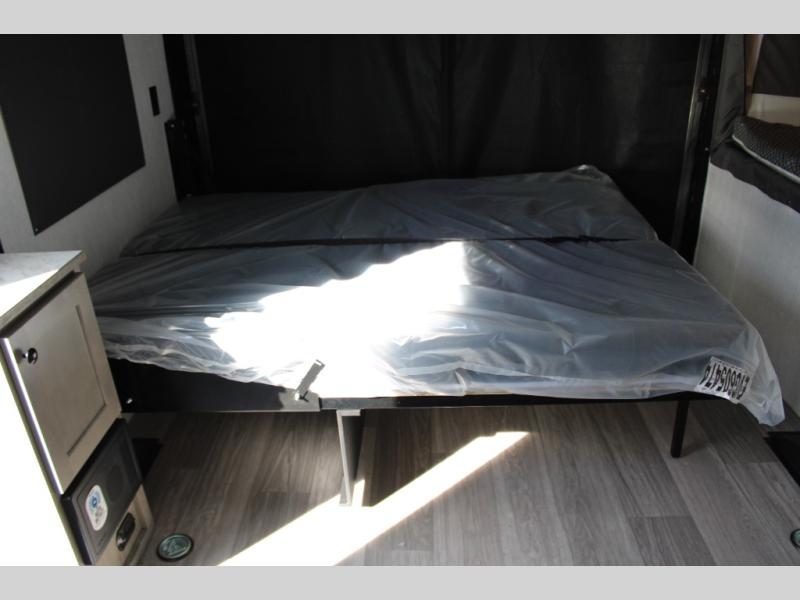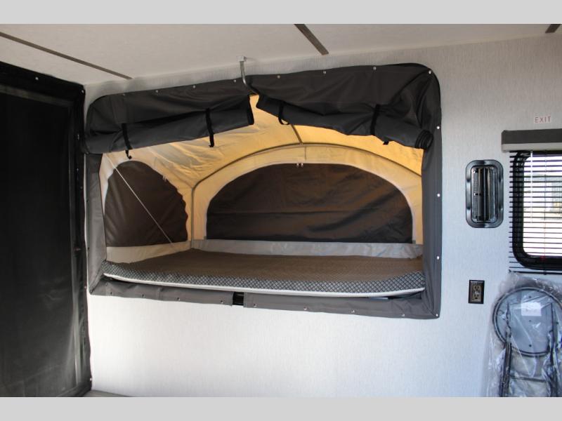 Get ready for a great camping experience where you can take along your favorite ride-on toys, kayaks, or other items that you may not normally have room to load as this toy hauler features a 6' 9" cargo width and 10' 11" cargo length. Once unloaded, set up with the rear bed that will make for a great night's rest. The front of this unit is shared with the wet bath and kitchen. Here, you can make meals on the two burner stove or in the microwave oven, and there is a refrigerator for perishables. And when the optional tent bed is added on this model, you can sleep more campers!