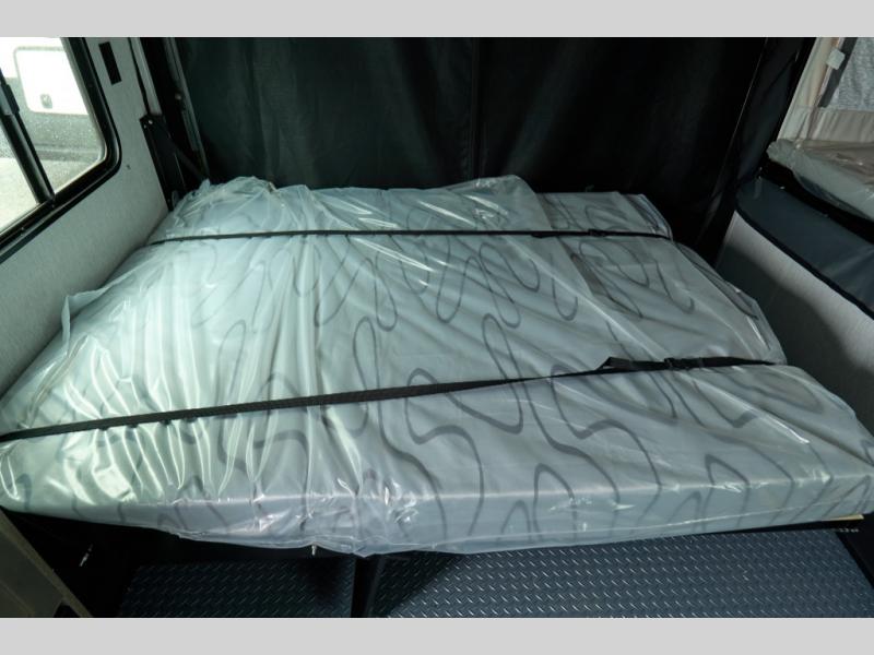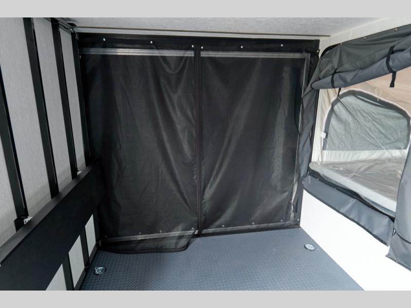 Get ready for a great camping experience where you can take along your favorite ride-on toys, kayaks, or other items that you may not normally have room to load as this toy hauler features a 6' 9" cargo width and 10' 11" cargo length. Once unloaded, set up with the rear bed that will make for a great night's rest. The front of this unit is shared with the wet bath and kitchen. Here, you can make meals on the two burner stove or in the microwave oven, and there is a refrigerator for perishables. And when the optional tent bed is added on this model, you can sleep more campers!