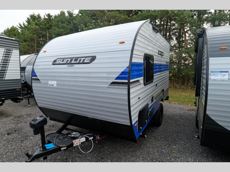 You can trust the build and enjoy your experience with any one of these Sunset Park RV Sun Lite travel trailers! Their aerodynamic profile is not only easy to haul, but also saves on fuel. They are built to withstand years of traveling even though they are lightweight with a diamond plate rock guard, a one piece PVC roof membrane, Dexter Spring-Leaf axles, and tinted safety glass windows. Some comfort standards you are sure to enjoy are the two-burner stove top range with hood, light and fan, plus the refrigerator and microwave, and an outside shower to help keep the dirt outdoors where it belongs.