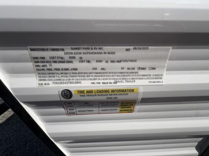 New 2026 Sunset Park RV Sun Lite 15MB Travel Trailer