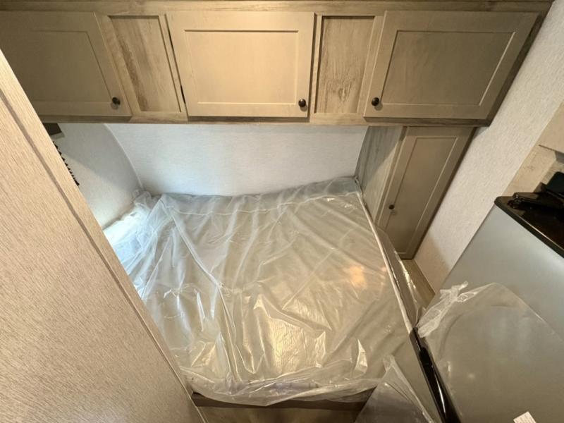 This compact travel trailer will be perfect for trips to the lake. Since there is a front bed, you won't have to sleep on an air mattress, and the convenient wet bath lets you freshen up each day. Breakfast can be made on two burner cooktop or in the microwave oven, and there is a refrigerator to keep your food fresh. This model also includes a sofa where you can relax in the evenings, and guests can sleep here if they want to tag along!