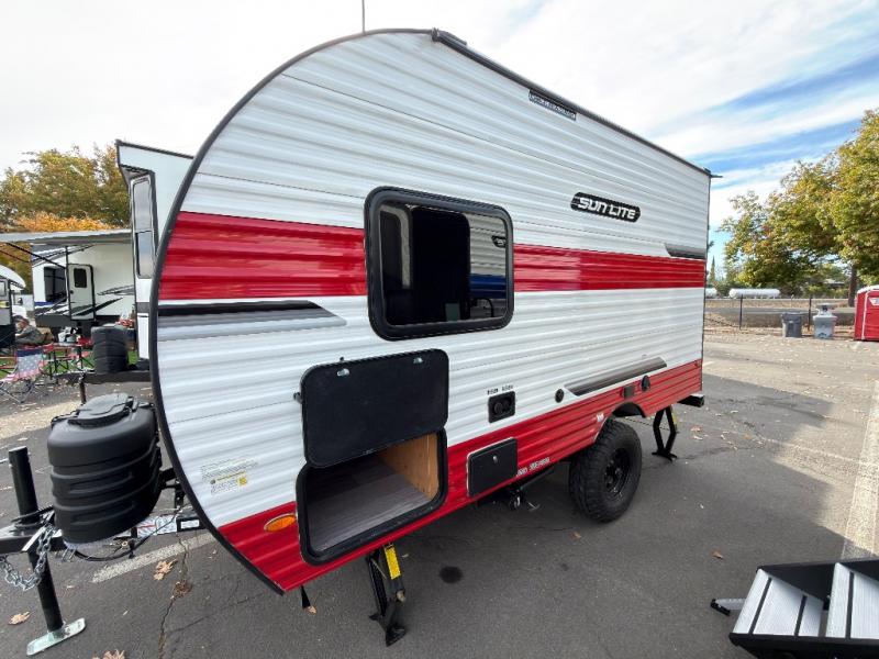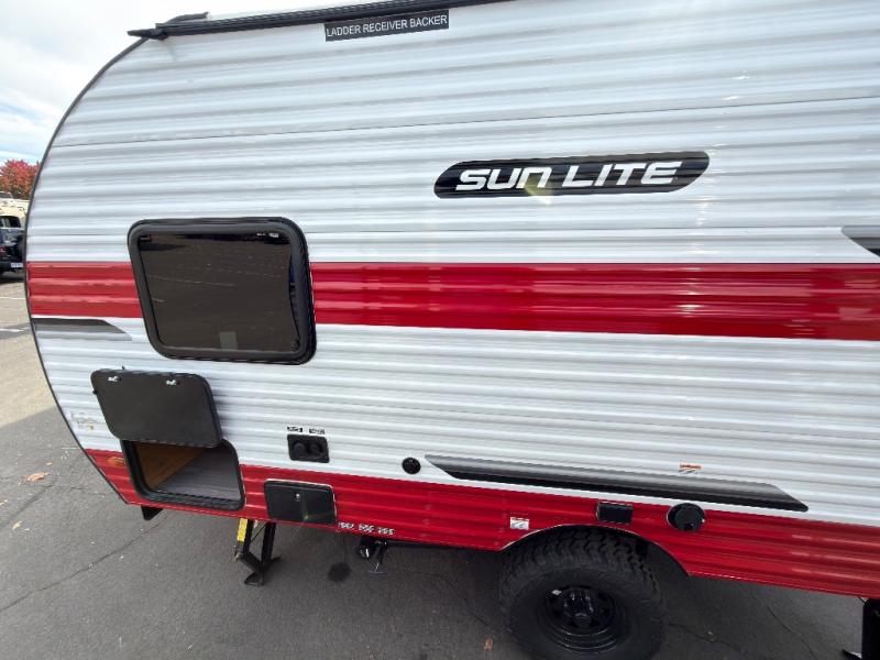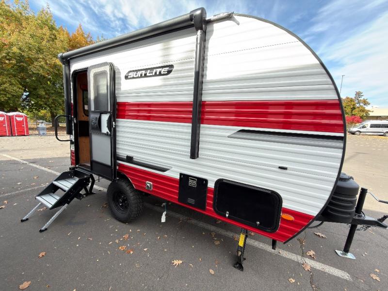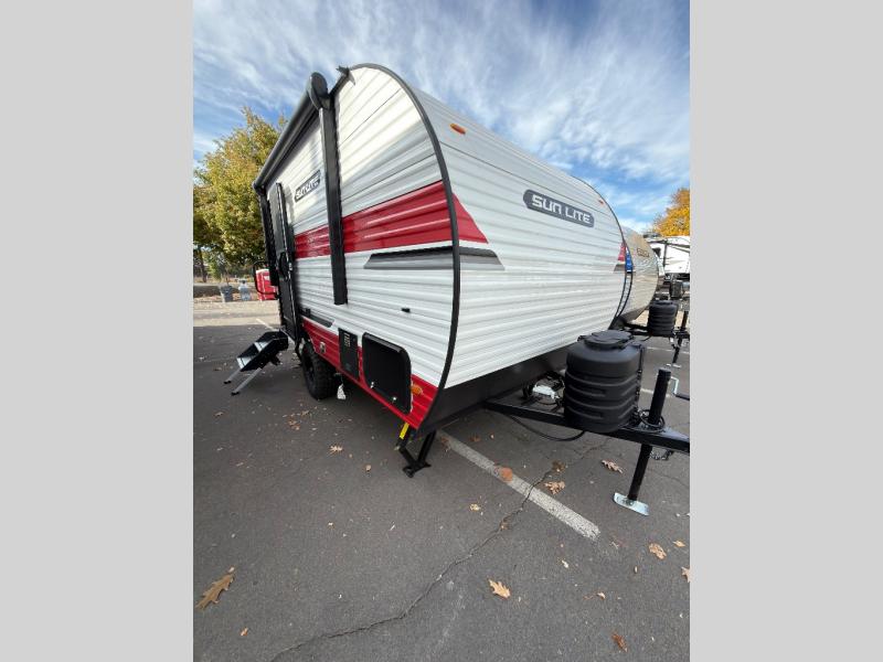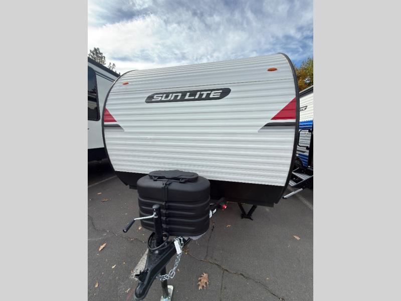 You can trust the build and enjoy your experience with any one of these Sunset Park RV Sun Lite travel trailers! Their aerodynamic profile is not only easy to haul, but also saves on fuel. They are built to withstand years of traveling even though they are lightweight with a diamond plate rock guard, a one piece PVC roof membrane, Dexter Spring-Leaf axles, and tinted safety glass windows. Some comfort standards you are sure to enjoy are the two-burner stove top range with hood, light and fan, plus the refrigerator and microwave, and an outside shower to help keep the dirt outdoors where it belongs.