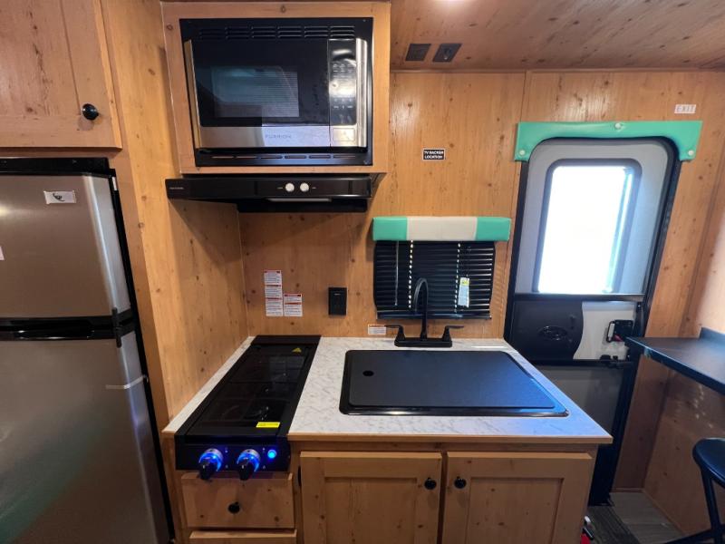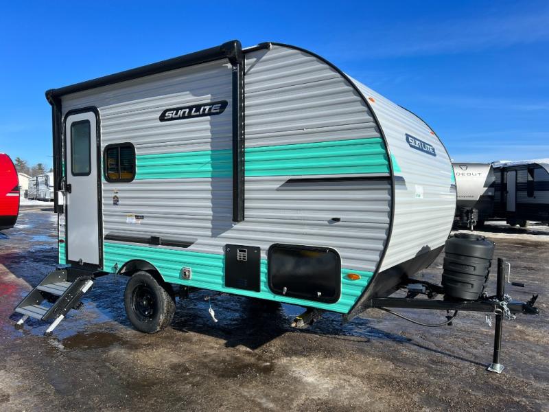 You can trust the build and enjoy your experience with any one of these Sunset Park RV Sun Lite travel trailers! Their aerodynamic profile is not only easy to haul, but also saves on fuel. They are built to withstand years of traveling even though they are lightweight with a diamond plate rock guard, a one piece PVC roof membrane, Dexter Spring-Leaf axles, and tinted safety glass windows. Some comfort standards you are sure to enjoy are the two-burner stove top range with hood, light and fan, plus the refrigerator and microwave, and an outside shower to help keep the dirt outdoors where it belongs.