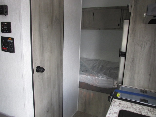 This compact travel trailer will be perfect for trips to the lake. Since there is a front bed, you won't have to sleep on an air mattress, and the convenient wet bath lets you freshen up each day. Breakfast can be made on two burner cooktop or in the microwave oven, and there is a refrigerator to keep your food fresh. This model also includes a sofa where you can relax in the evenings, and guests can sleep here if they want to tag along. And when the optional tent bed is added, you can sleep even more campers!