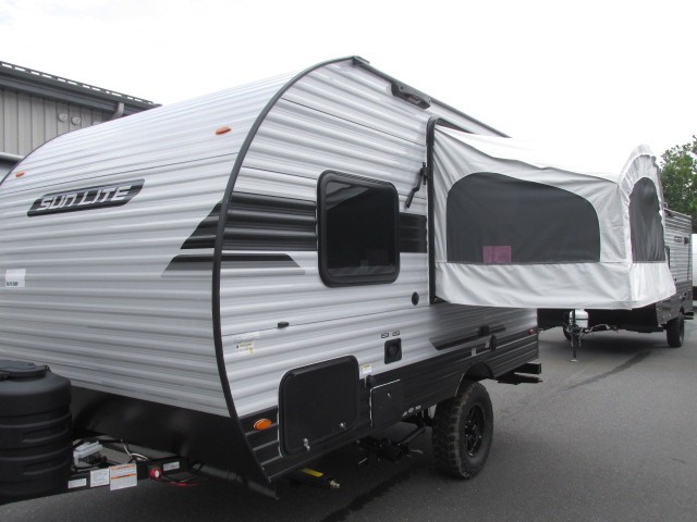 You can trust the build and enjoy your experience with any one of these Sunset Park RV Sun Lite travel trailers! Their aerodynamic profile is not only easy to haul, but also saves on fuel. They are built to withstand years of traveling even though they are lightweight with a diamond plate rock guard, a one piece PVC roof membrane, Dexter Spring-Leaf axles, and tinted safety glass windows. Some comfort standards you are sure to enjoy are the two-burner stove top range with hood, light and fan, plus the refrigerator and microwave, and an outside shower to help keep the dirt outdoors where it belongs.