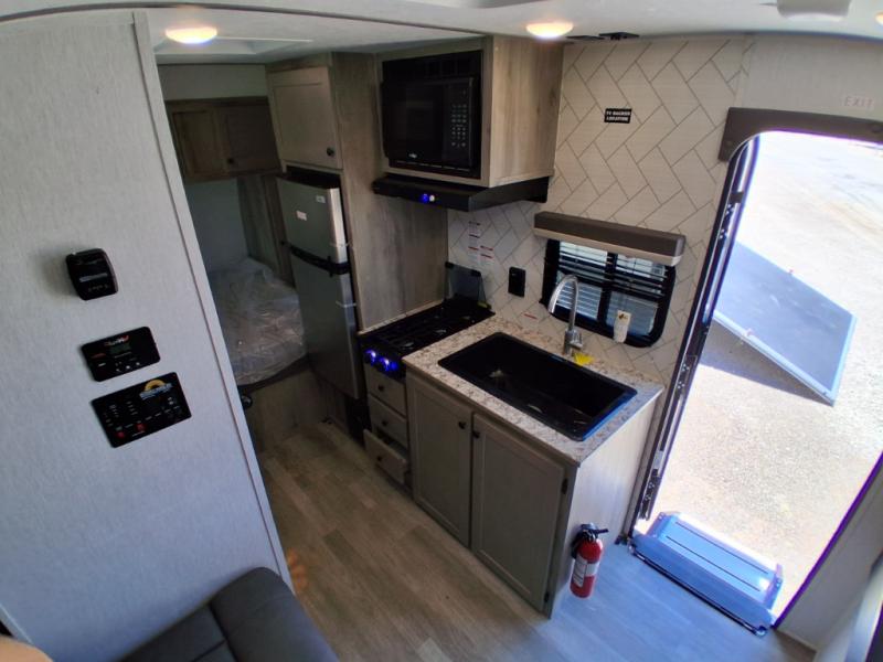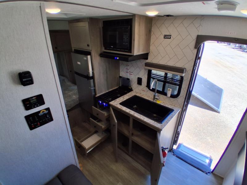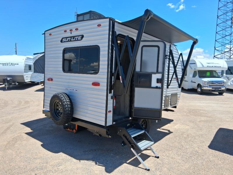 You can trust the build and enjoy your experience with any one of these Sunset Park RV Sun Lite travel trailers! Their aerodynamic profile is not only easy to haul, but also saves on fuel. They are built to withstand years of traveling even though they are lightweight with a diamond plate rock guard, a one piece PVC roof membrane, Dexter Spring-Leaf axles, and tinted safety glass windows. Some comfort standards you are sure to enjoy are the two-burner stove top range with hood, light and fan, plus the refrigerator and microwave, and an outside shower to help keep the dirt outdoors where it belongs.