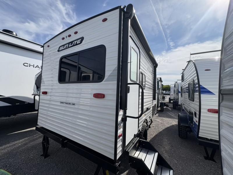 You can trust the build and enjoy your experience with any one of these Sunset Park RV Sun Lite travel trailers! Their aerodynamic profile is not only easy to haul, but also saves on fuel. They are built to withstand years of traveling even though they are lightweight with a diamond plate rock guard, a one piece PVC roof membrane, Dexter Spring-Leaf axles, and tinted safety glass windows. Some comfort standards you are sure to enjoy are the two-burner stove top range with hood, light and fan, plus the refrigerator and microwave, and an outside shower to help keep the dirt outdoors where it belongs.