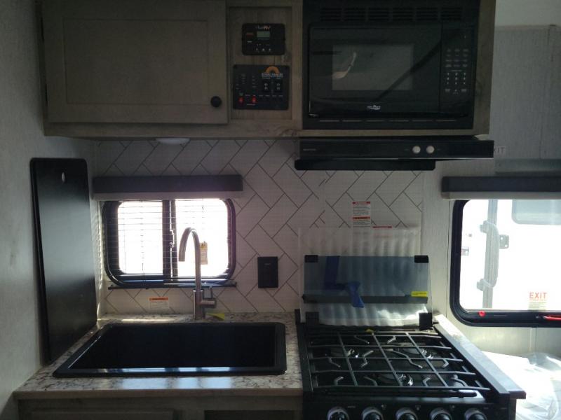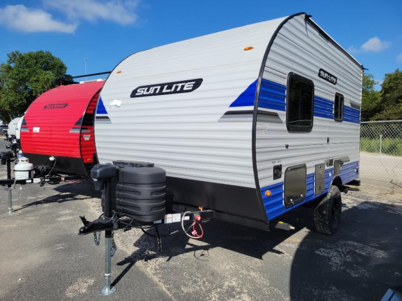 You can trust the build and enjoy your experience with any one of these Sunset Park RV Sun Lite travel trailers! Their aerodynamic profile is not only easy to haul, but also saves on fuel. They are built to withstand years of traveling even though they are lightweight with a diamond plate rock guard, a one piece PVC roof membrane, Dexter Spring-Leaf axles, and tinted safety glass windows. Some comfort standards you are sure to enjoy are the two-burner stove top range with hood, light and fan, plus the refrigerator and microwave, and an outside shower to help keep the dirt outdoors where it belongs.