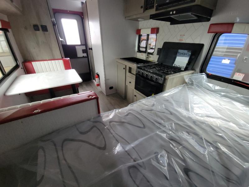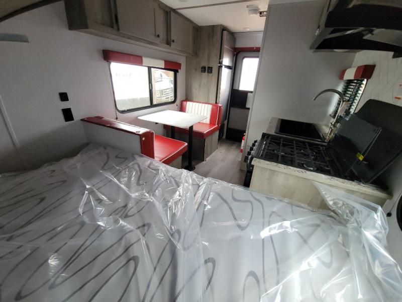 This travel trailer is perfect for couples who want to getaway together! The front bed offers a comfortable place to lay your head at night. When you're not using the booth dinette to enjoy a meal that you prepared with the two burner cooktop or playing a card game, you can transform it into an extra sleeping space. You can start your mornings feeling clean and fresh after showering in the tub with unwanted steam removed with the power roof vent.