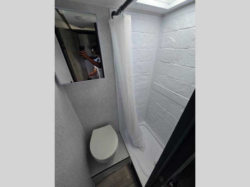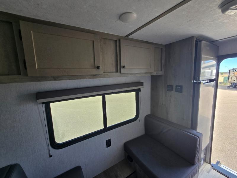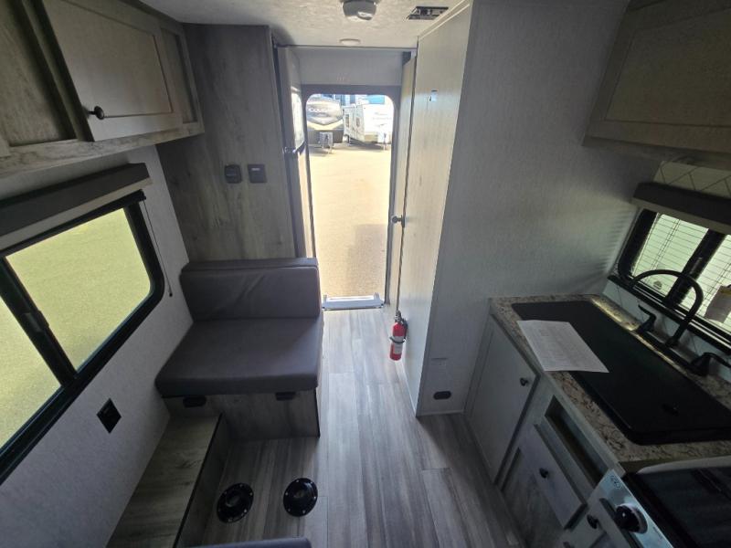 This travel trailer is perfect for couples who want to getaway together! The front bed offers a comfortable place to lay your head at night. When you're not using the booth dinette to enjoy a meal that you prepared with the two burner cooktop or playing a card game, you can transform it into an extra sleeping space. You can start your mornings feeling clean and fresh after showering in the tub with unwanted steam removed with the power roof vent.