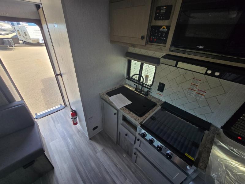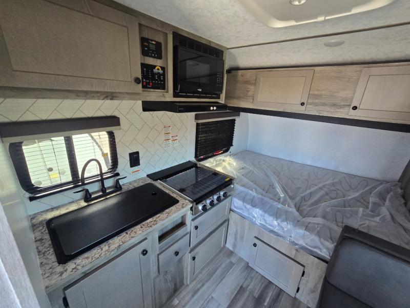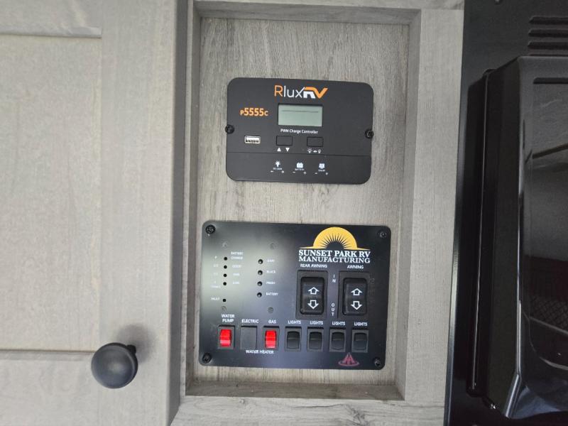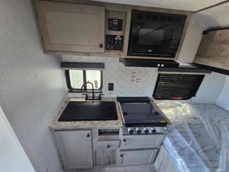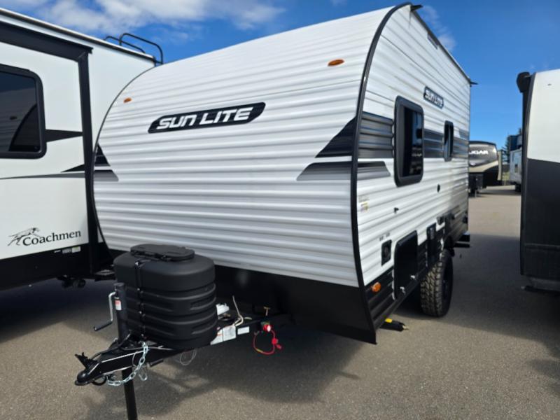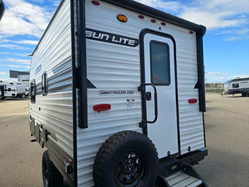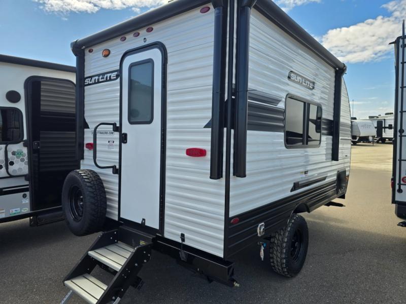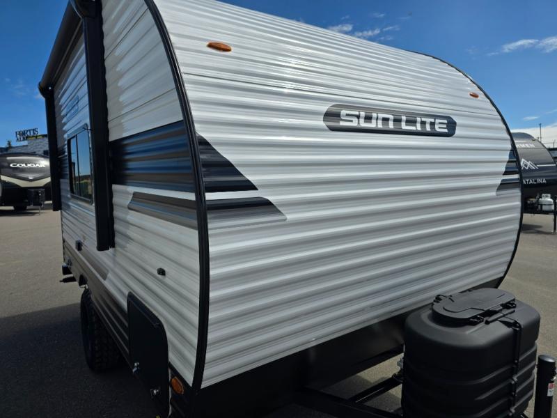You can trust the build and enjoy your experience with any one of these Sunset Park RV Sun Lite travel trailers! Their aerodynamic profile is not only easy to haul, but also saves on fuel. They are built to withstand years of traveling even though they are lightweight with a diamond plate rock guard, a one piece PVC roof membrane, Dexter Spring-Leaf axles, and tinted safety glass windows. Some comfort standards you are sure to enjoy are the two-burner stove top range with hood, light and fan, plus the refrigerator and microwave, and an outside shower to help keep the dirt outdoors where it belongs.