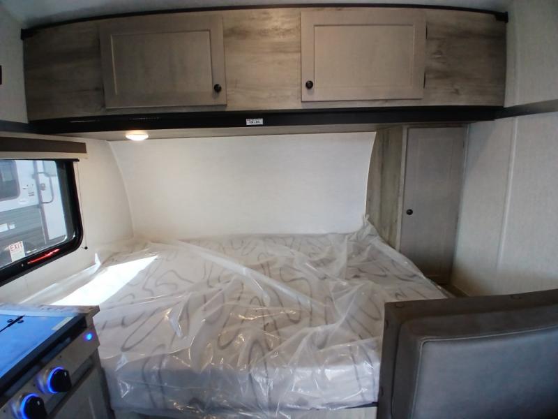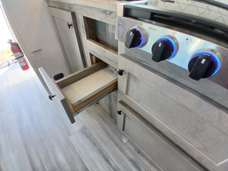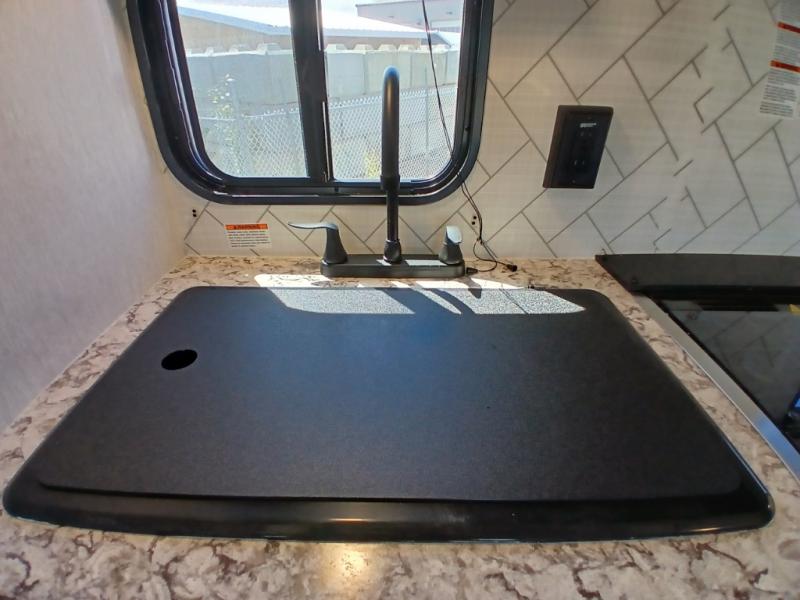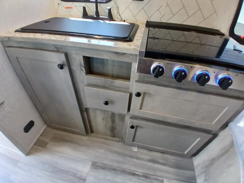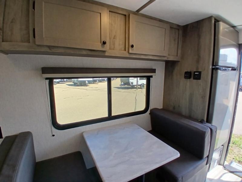 This travel trailer is perfect for couples who want to getaway together! The front bed offers a comfortable place to lay your head at night. When you're not using the booth dinette to enjoy a meal that you prepared with the two burner cooktop or playing a card game, you can transform it into an extra sleeping space. You can start your mornings feeling clean and fresh after showering in the tub with unwanted steam removed with the power roof vent.