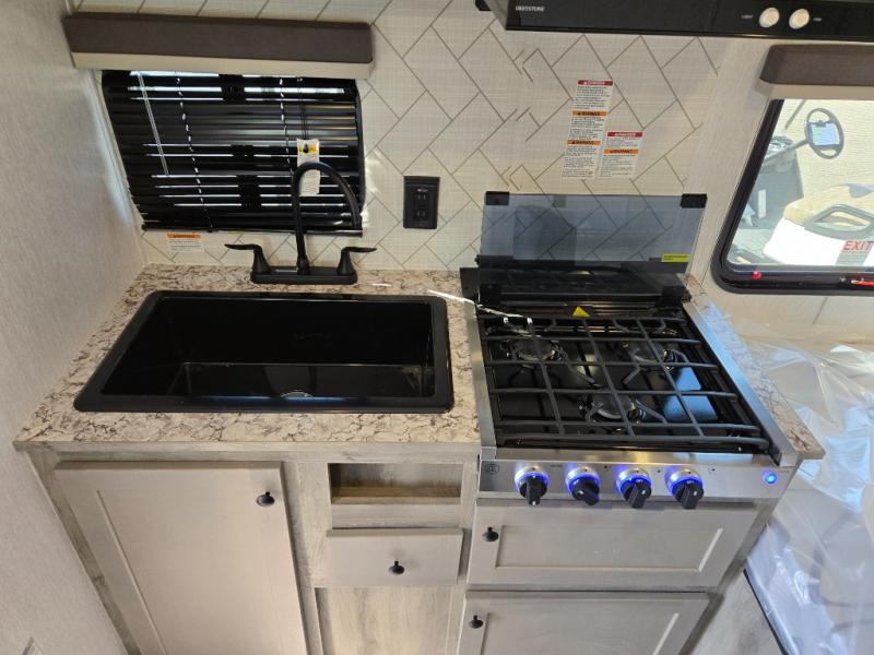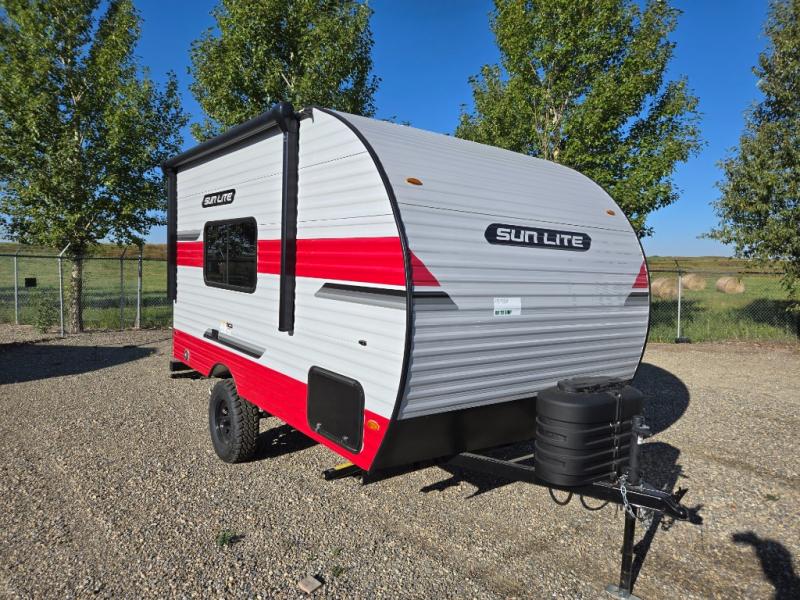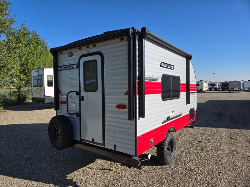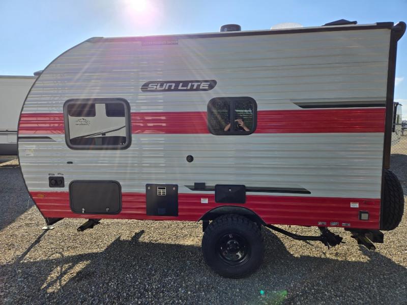 You can trust the build and enjoy your experience with any one of these Sunset Park RV Sun Lite travel trailers! Their aerodynamic profile is not only easy to haul, but also saves on fuel. They are built to withstand years of traveling even though they are lightweight with a diamond plate rock guard, a one piece PVC roof membrane, Dexter Spring-Leaf axles, and tinted safety glass windows. Some comfort standards you are sure to enjoy are the two-burner stove top range with hood, light and fan, plus the refrigerator and microwave, and an outside shower to help keep the dirt outdoors where it belongs.