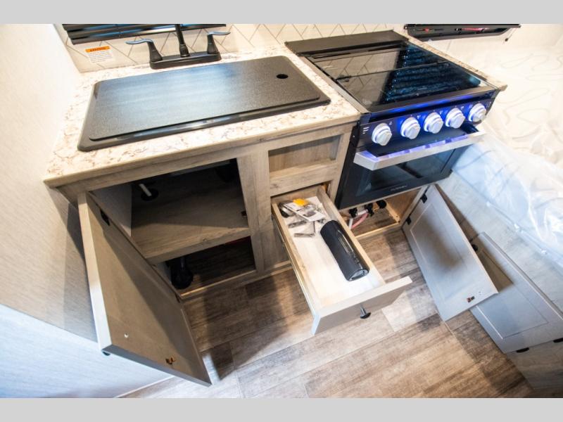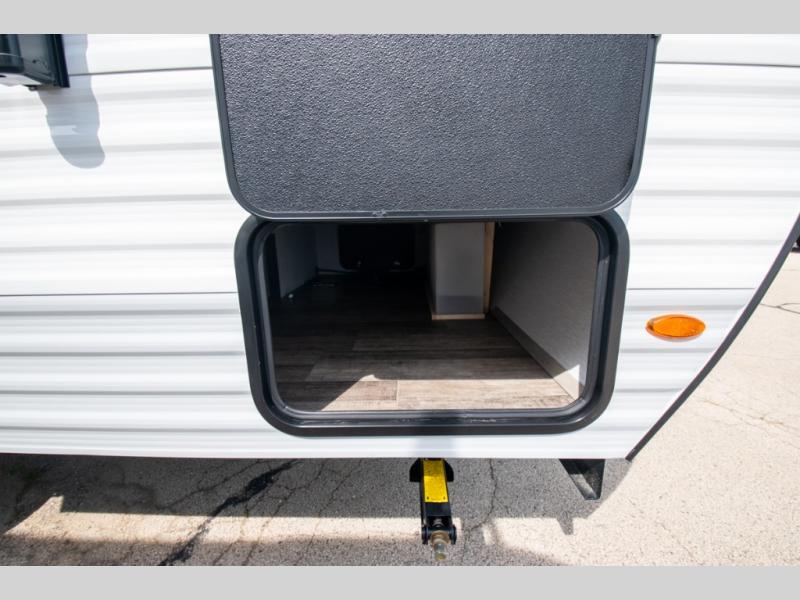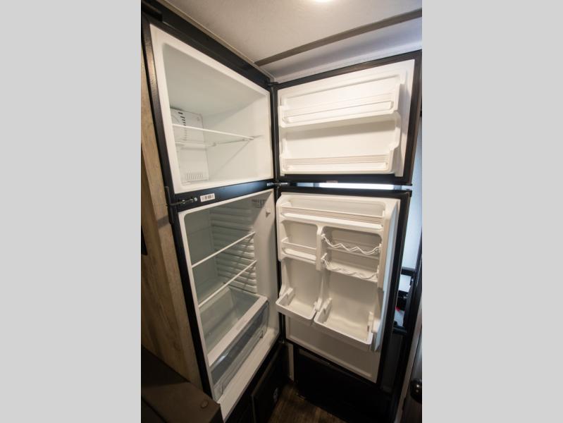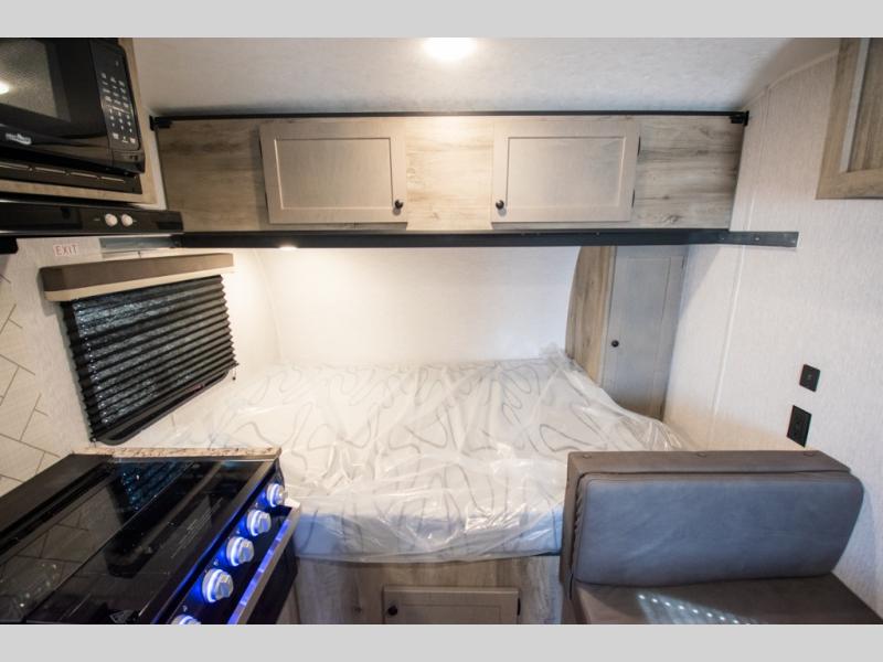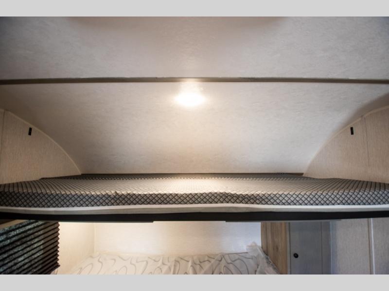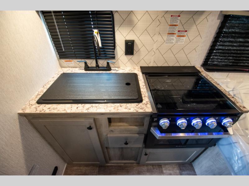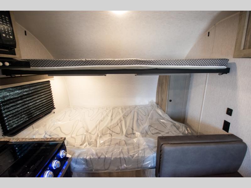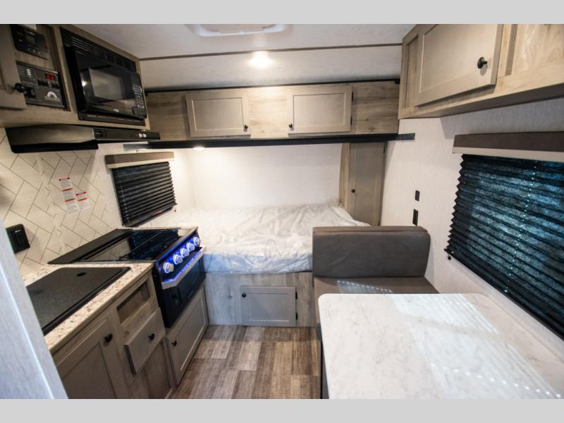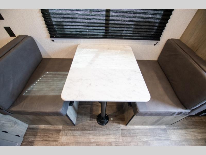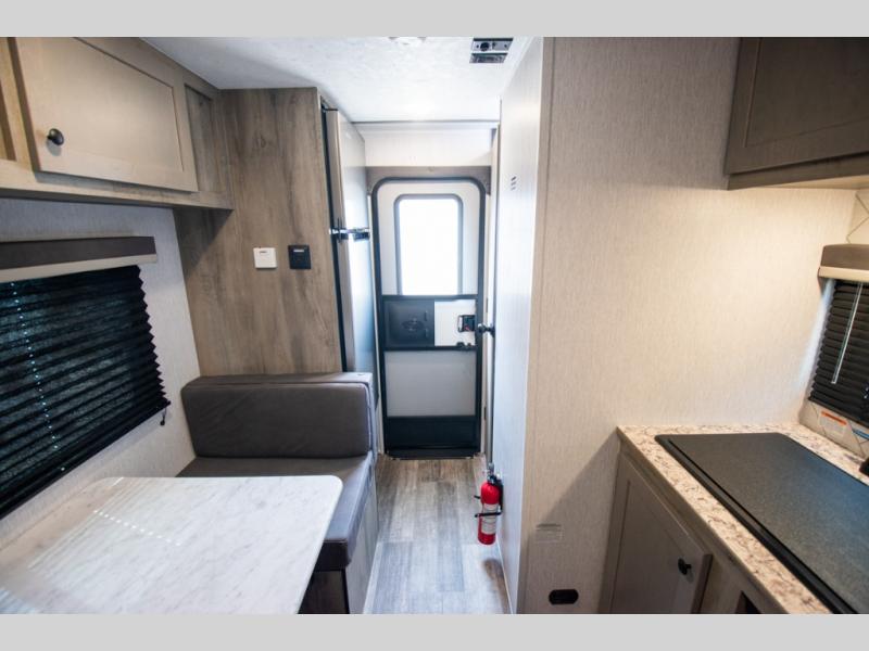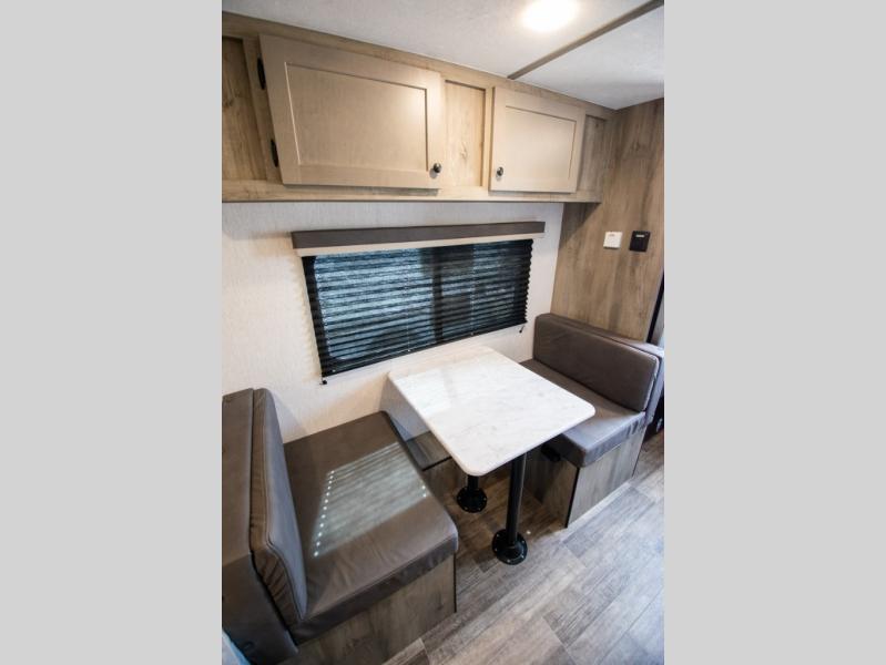 This travel trailer is perfect for couples who want to getaway together! The front bed offers a comfortable place to lay your head at night. When you're not using the booth dinette to enjoy a meal that you prepared with the two burner cooktop or playing a card game, you can transform it into an extra sleeping space. You can start your mornings feeling clean and fresh after showering in the tub with unwanted steam removed with the power roof vent.