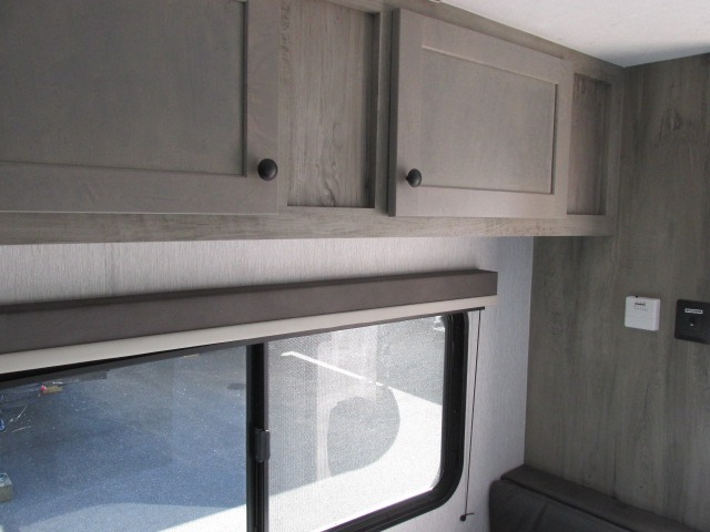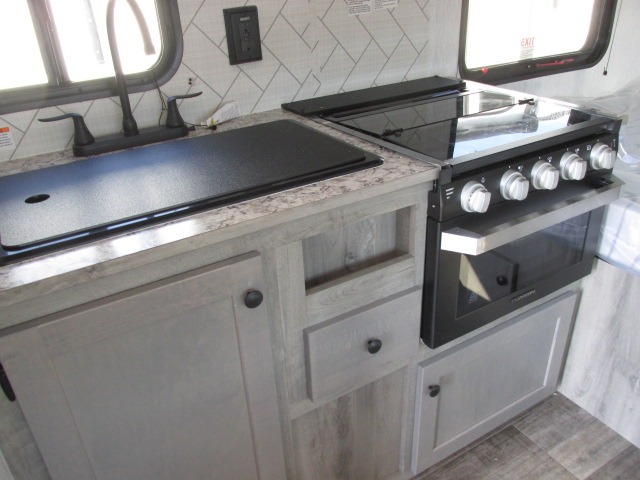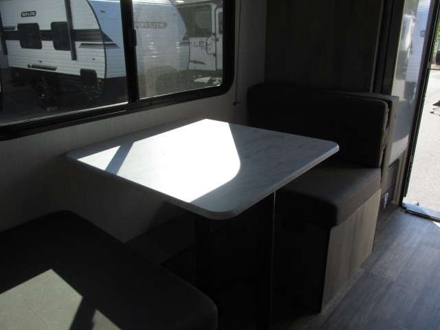 This travel trailer is perfect for couples who want to getaway together! The front bed offers a comfortable place to lay your head at night. When you're not using the booth dinette to enjoy a meal that you prepared with the two burner cooktop or playing a card game, you can transform it into an extra sleeping space. You can start your mornings feeling clean and fresh after showering in the tub with unwanted steam removed with the power roof vent.