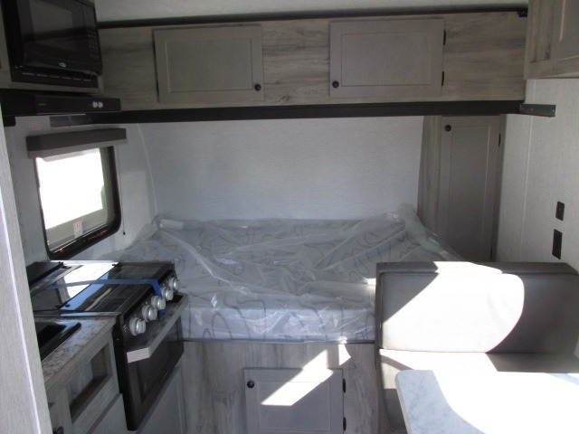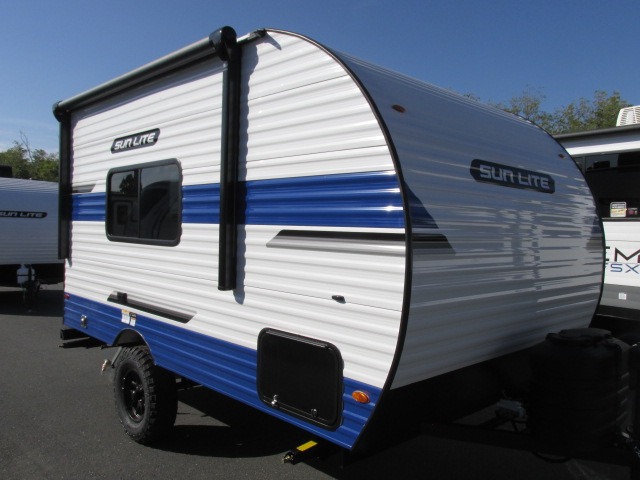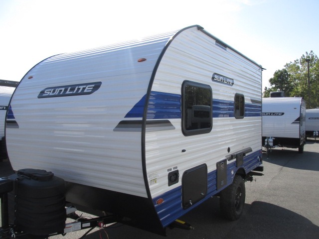 You can trust the build and enjoy your experience with any one of these Sunset Park RV Sun Lite travel trailers! Their aerodynamic profile is not only easy to haul, but also saves on fuel. They are built to withstand years of traveling even though they are lightweight with a diamond plate rock guard, a one piece PVC roof membrane, Dexter Spring-Leaf axles, and tinted safety glass windows. Some comfort standards you are sure to enjoy are the two-burner stove top range with hood, light and fan, plus the refrigerator and microwave, and an outside shower to help keep the dirt outdoors where it belongs.