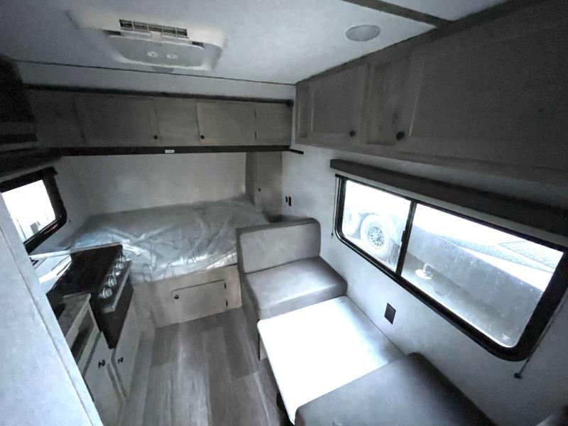 This travel trailer is perfect for couples who want to getaway together! The front bed offers a comfortable place to lay your head at night. When you're not using the booth dinette to enjoy a meal that you prepared with the two burner cooktop or playing a card game, you can transform it into an extra sleeping space. You can start your mornings feeling clean and fresh after showering in the tub with unwanted steam removed with the power roof vent.