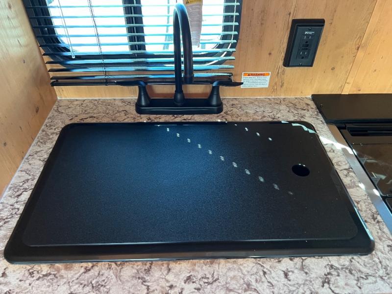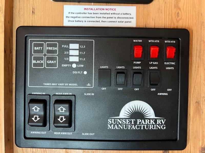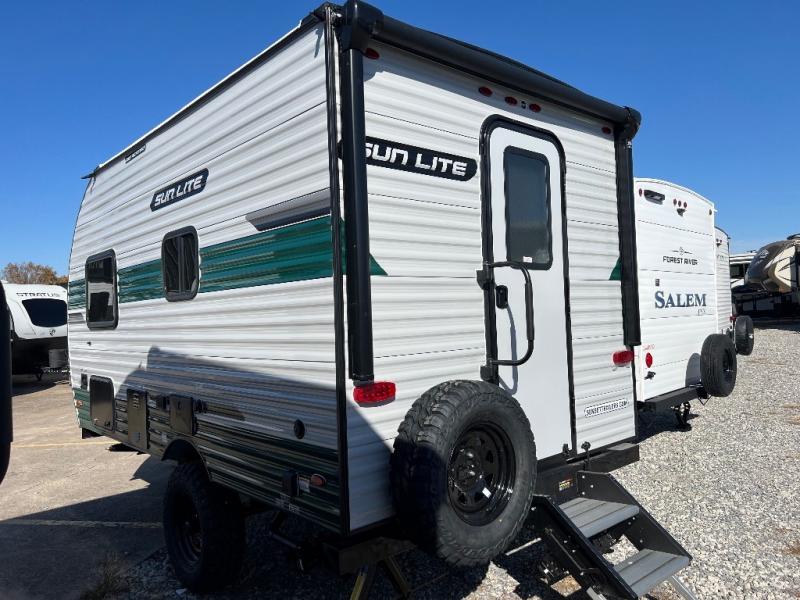 You can trust the build and enjoy your experience with any one of these Sunset Park RV Sun Lite travel trailers! Their aerodynamic profile is not only easy to haul, but also saves on fuel. They are built to withstand years of traveling even though they are lightweight with a diamond plate rock guard, a one piece PVC roof membrane, Dexter Spring-Leaf axles, and tinted safety glass windows. Some comfort standards you are sure to enjoy are the two-burner stove top range with hood, light and fan, plus the refrigerator and microwave, and an outside shower to help keep the dirt outdoors where it belongs.