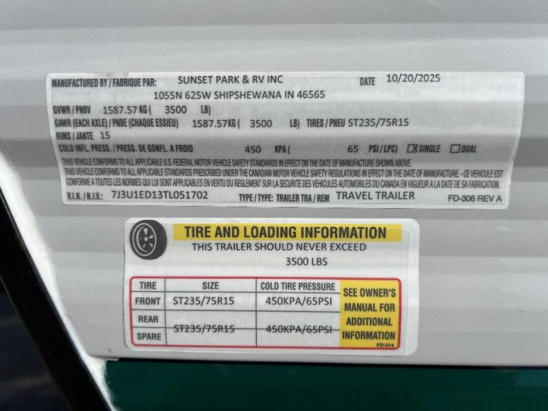 New 2026 Sunset Park RV Sun Lite 16BH Travel Trailer