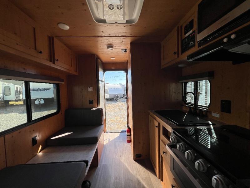 This travel trailer is perfect for couples who want to getaway together! The front bed offers a comfortable place to lay your head at night. When you're not using the booth dinette to enjoy a meal that you prepared with the two burner cooktop or playing a card game, you can transform it into an extra sleeping space. You can start your mornings feeling clean and fresh after showering in the tub with unwanted steam removed with the power roof vent.
