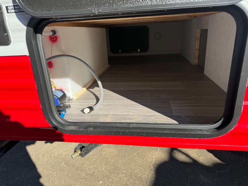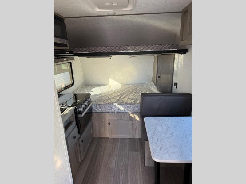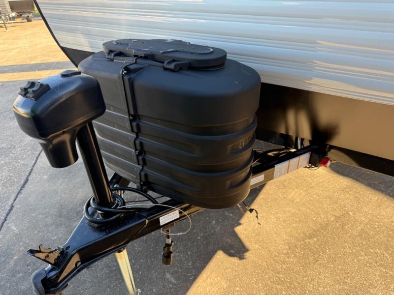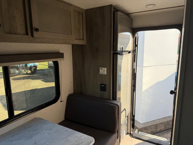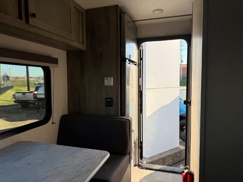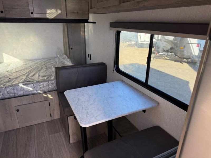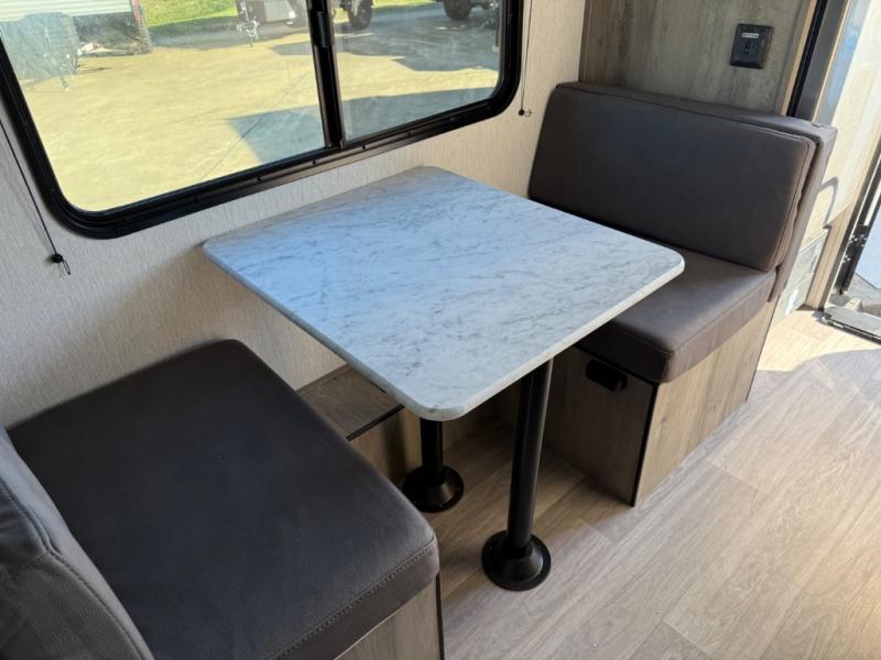 This travel trailer is perfect for couples who want to getaway together! The front bed offers a comfortable place to lay your head at night. When you're not using the booth dinette to enjoy a meal that you prepared with the two burner cooktop or playing a card game, you can transform it into an extra sleeping space. You can start your mornings feeling clean and fresh after showering in the tub with unwanted steam removed with the power roof vent.