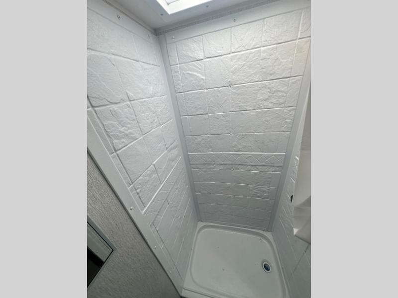 This travel trailer is perfect for couples who want to getaway together! The front bed offers a comfortable place to lay your head at night. When you're not using the booth dinette to enjoy a meal that you prepared with the two burner cooktop or playing a card game, you can transform it into an extra sleeping space. You can start your mornings feeling clean and fresh after showering in the tub with unwanted steam removed with the power roof vent.