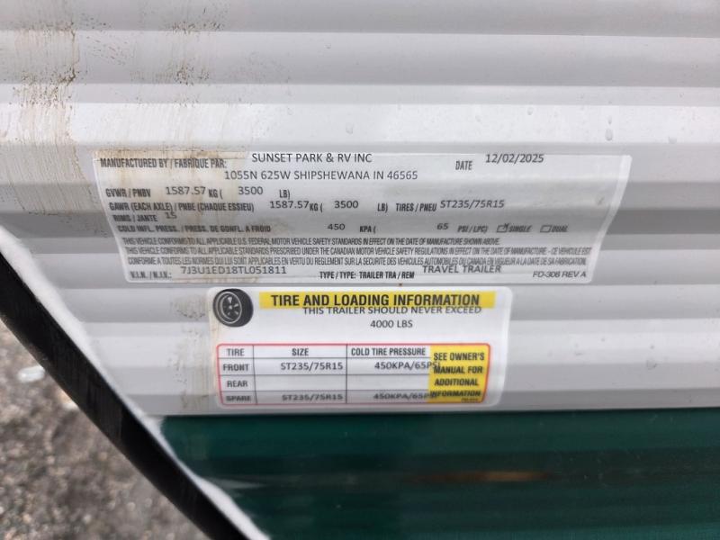 New 2026 Sunset Park RV Sun Lite 16BH Travel Trailer