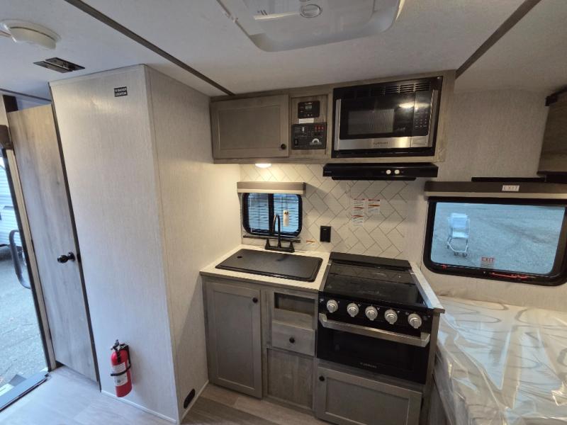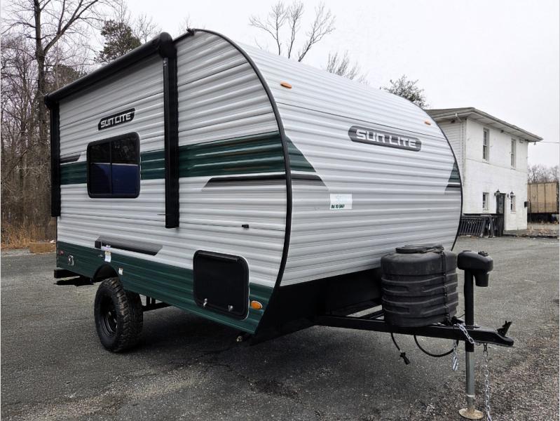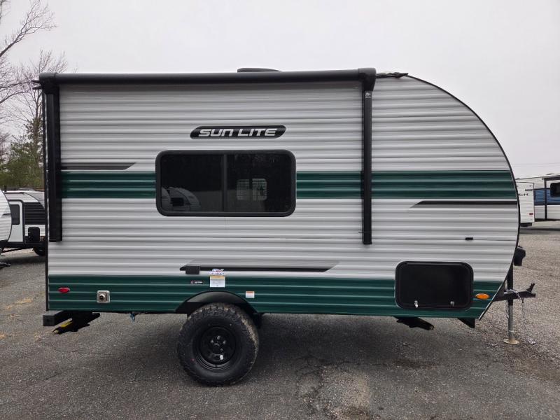 You can trust the build and enjoy your experience with any one of these Sunset Park RV Sun Lite travel trailers! Their aerodynamic profile is not only easy to haul, but also saves on fuel. They are built to withstand years of traveling even though they are lightweight with a diamond plate rock guard, a one piece PVC roof membrane, Dexter Spring-Leaf axles, and tinted safety glass windows. Some comfort standards you are sure to enjoy are the two-burner stove top range with hood, light and fan, plus the refrigerator and microwave, and an outside shower to help keep the dirt outdoors where it belongs.