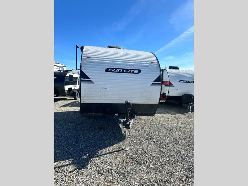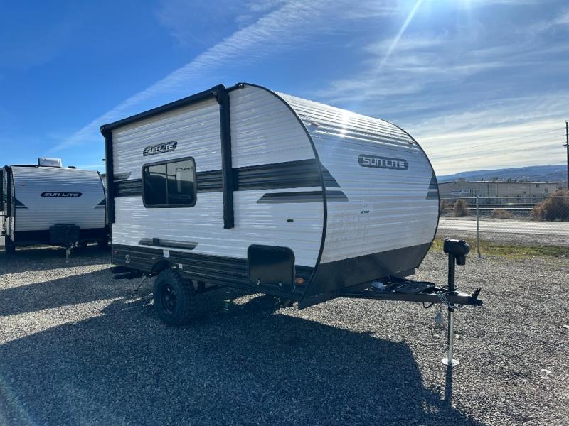 You can trust the build and enjoy your experience with any one of these Sunset Park RV Sun Lite travel trailers! Their aerodynamic profile is not only easy to haul, but also saves on fuel. They are built to withstand years of traveling even though they are lightweight with a diamond plate rock guard, a one piece PVC roof membrane, Dexter Spring-Leaf axles, and tinted safety glass windows. Some comfort standards you are sure to enjoy are the two-burner stove top range with hood, light and fan, plus the refrigerator and microwave, and an outside shower to help keep the dirt outdoors where it belongs.