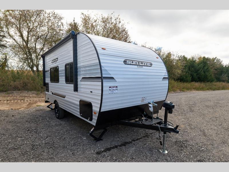 You can trust the build and enjoy your experience with any one of these Sunset Park RV Sun Lite travel trailers! Their aerodynamic profile is not only easy to haul, but also saves on fuel. They are built to withstand years of traveling even though they are lightweight with a diamond plate rock guard, a one piece PVC roof membrane, Dexter Spring-Leaf axles, and tinted safety glass windows. Some comfort standards you are sure to enjoy are the two-burner stove top range with hood, light and fan, plus the refrigerator and microwave, and an outside shower to help keep the dirt outdoors where it belongs.