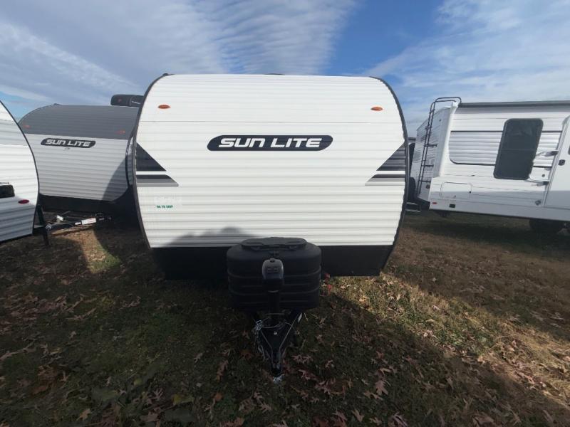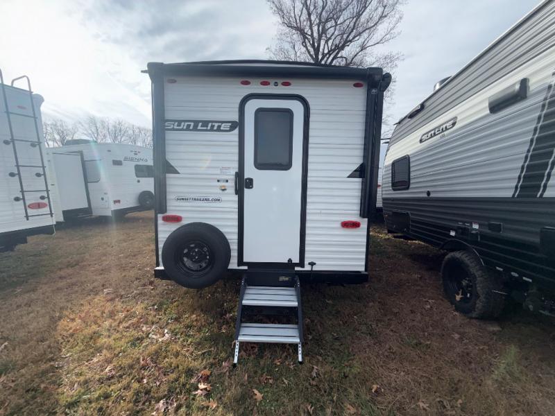 You can trust the build and enjoy your experience with any one of these Sunset Park RV Sun Lite travel trailers! Their aerodynamic profile is not only easy to haul, but also saves on fuel. They are built to withstand years of traveling even though they are lightweight with a diamond plate rock guard, a one piece PVC roof membrane, Dexter Spring-Leaf axles, and tinted safety glass windows. Some comfort standards you are sure to enjoy are the two-burner stove top range with hood, light and fan, plus the refrigerator and microwave, and an outside shower to help keep the dirt outdoors where it belongs.