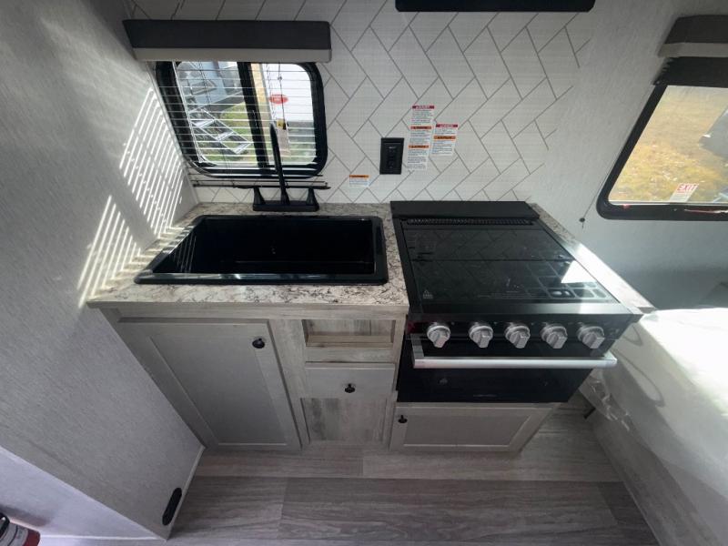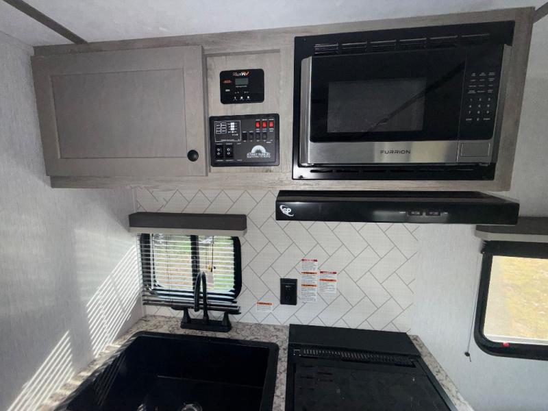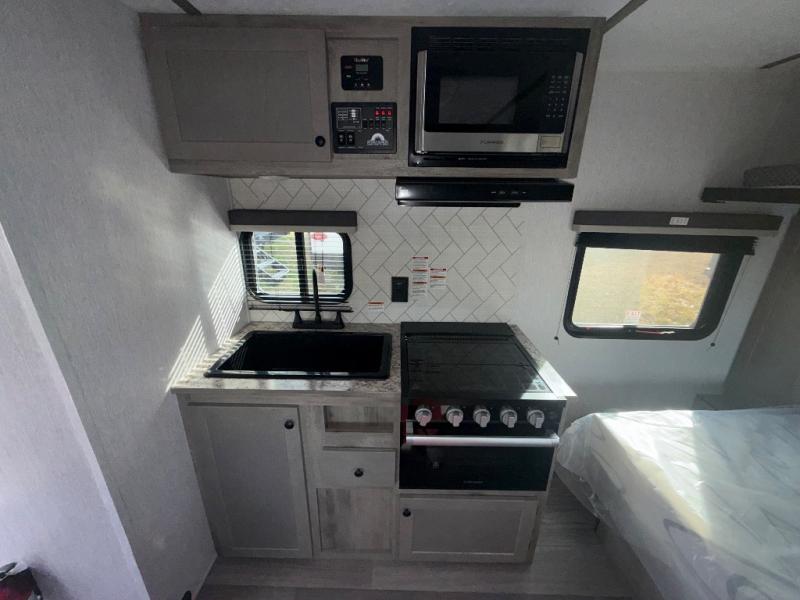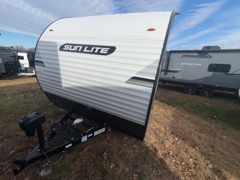 You can trust the build and enjoy your experience with any one of these Sunset Park RV Sun Lite travel trailers! Their aerodynamic profile is not only easy to haul, but also saves on fuel. They are built to withstand years of traveling even though they are lightweight with a diamond plate rock guard, a one piece PVC roof membrane, Dexter Spring-Leaf axles, and tinted safety glass windows. Some comfort standards you are sure to enjoy are the two-burner stove top range with hood, light and fan, plus the refrigerator and microwave, and an outside shower to help keep the dirt outdoors where it belongs.