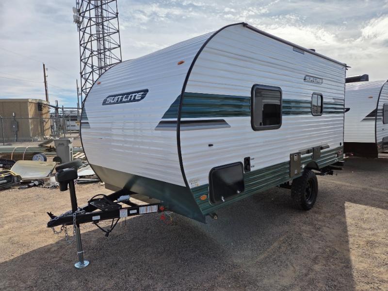 You can trust the build and enjoy your experience with any one of these Sunset Park RV Sun Lite travel trailers! Their aerodynamic profile is not only easy to haul, but also saves on fuel. They are built to withstand years of traveling even though they are lightweight with a diamond plate rock guard, a one piece PVC roof membrane, Dexter Spring-Leaf axles, and tinted safety glass windows. Some comfort standards you are sure to enjoy are the two-burner stove top range with hood, light and fan, plus the refrigerator and microwave, and an outside shower to help keep the dirt outdoors where it belongs.