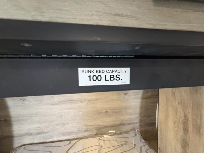 Pack your bags and load up this travel trailer for a great camping trip! You will have everything you need to keep your belly full with the two burner cooktop, your hair clean with a tub inside rear corner bathroom which also has a power vent fan, and your body well rested after sleeping on the front bed. You can even play card games at the booth dinette or transform it into an extra sleeping space. There is also an outside shower to rinse the mud off your feet before entering inside!