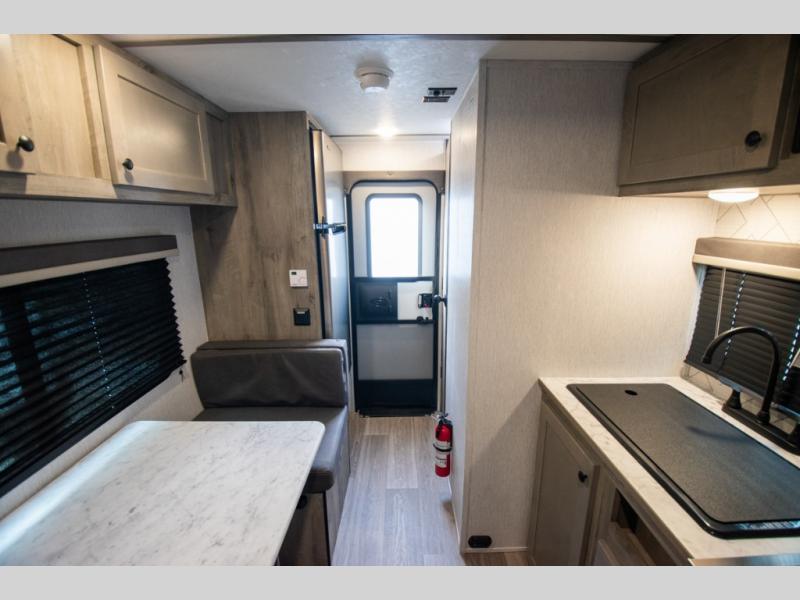 You can trust the build and enjoy your experience with any one of these Sunset Park RV Sun Lite travel trailers! Their aerodynamic profile is not only easy to haul, but also saves on fuel. They are built to withstand years of traveling even though they are lightweight with a diamond plate rock guard, a one piece PVC roof membrane, Dexter Spring-Leaf axles, and tinted safety glass windows. Some comfort standards you are sure to enjoy are the two-burner stove top range with hood, light and fan, plus the refrigerator and microwave, and an outside shower to help keep the dirt outdoors where it belongs.