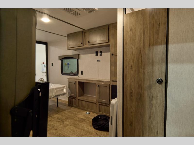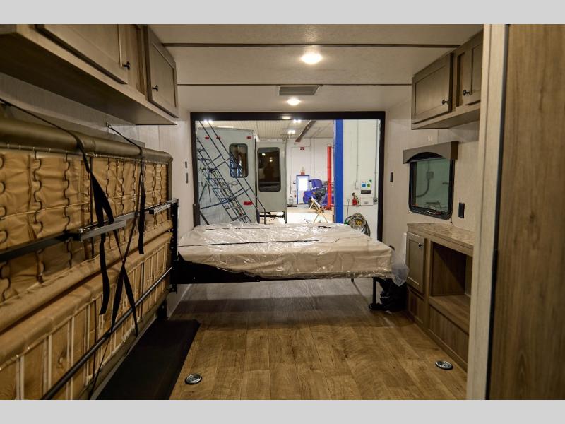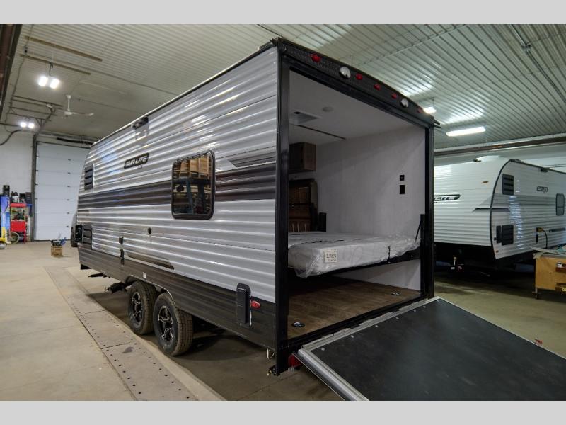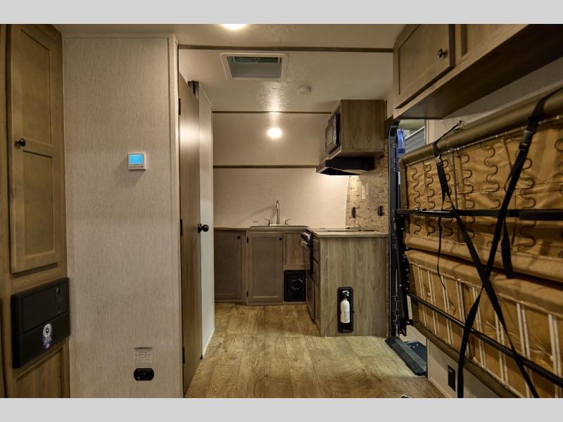 Get ready for a great camping experience where you can take along your favorite ride-on toys, kayaks, or other items that you may not normally have room to load as this toy hauler features 13' 2" of cargo space that can easily be loaded using the rear ramp door. Once unloaded, set up with the fold-down bed that will make for a great night's rest. There is also a jiffy sofa that can transform into added sleeping space at night. The kitchen amenities will make it easy to create a warm meal, and you can get cleaned up and refreshed in the bathroom with tub/shower and toilet.