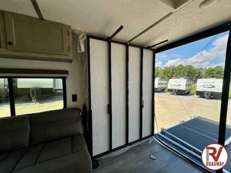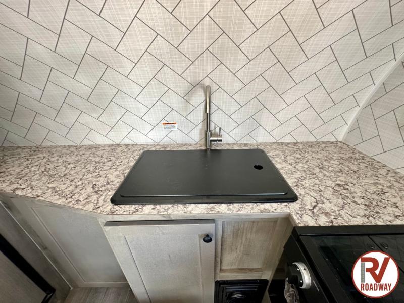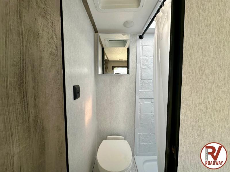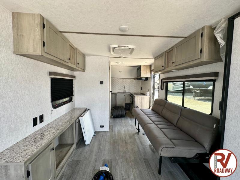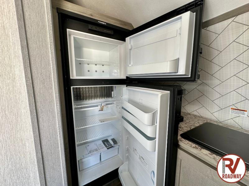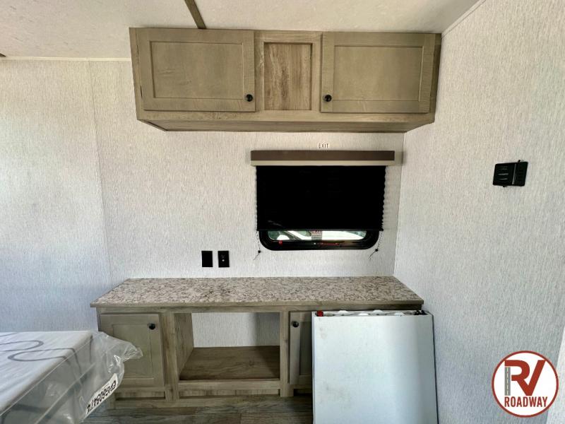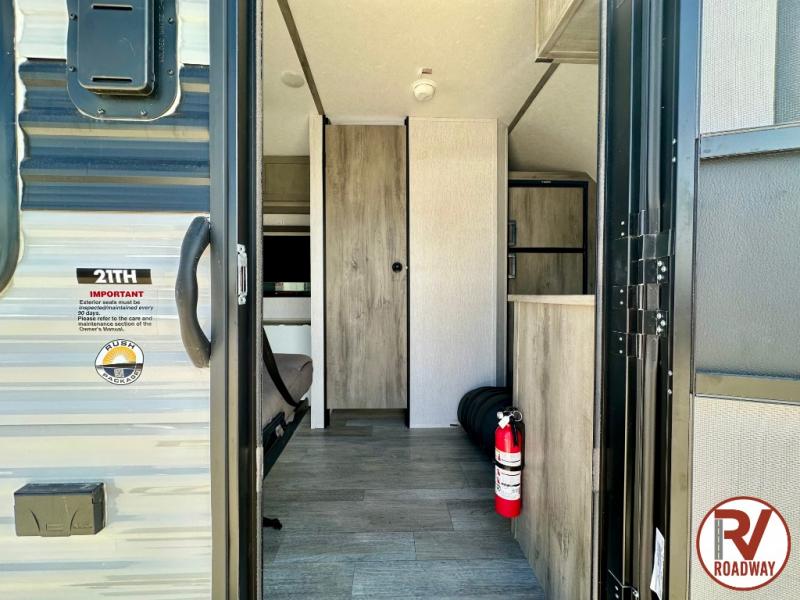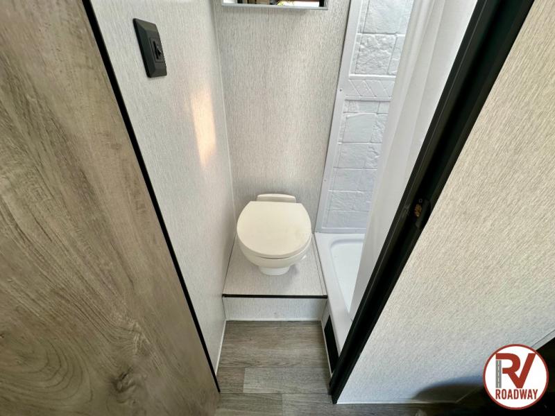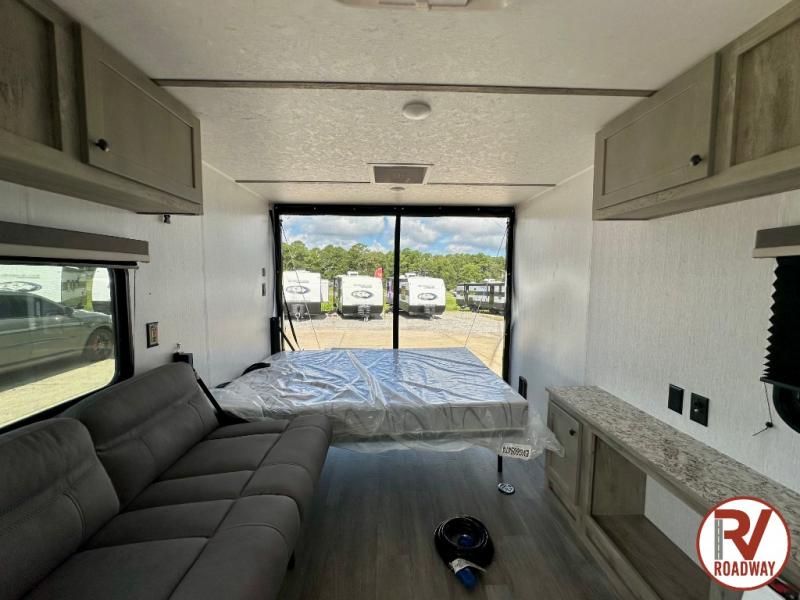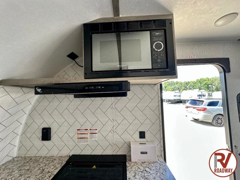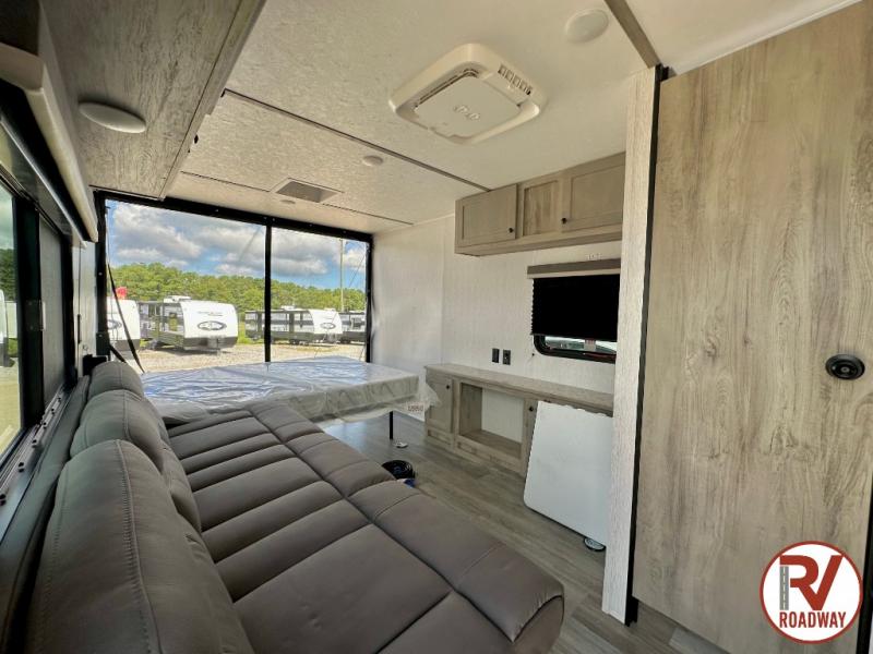 Get ready for a great camping experience where you can take along your favorite ride-on toys, kayaks, or other items that you may not normally have room to load as this toy hauler features 13' 2" of cargo space that can easily be loaded using the rear ramp door. Once unloaded, set up with the fold-down bed that will make for a great night's rest. There is also a jiffy sofa that can transform into added sleeping space at night. The kitchen amenities will make it easy to create a warm meal, and you can get cleaned up and refreshed in the bathroom with tub/shower and toilet. This unit also includes the Rush Toy Hauler Package with a ramp door, dual cargo loading lights, a magnetic rear bug screen, and four D-rings to secure your toys.