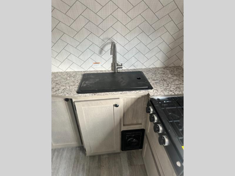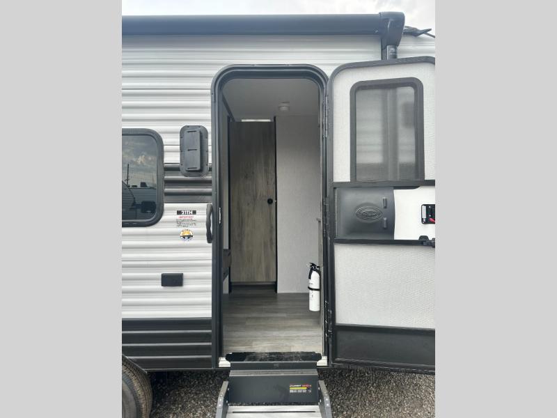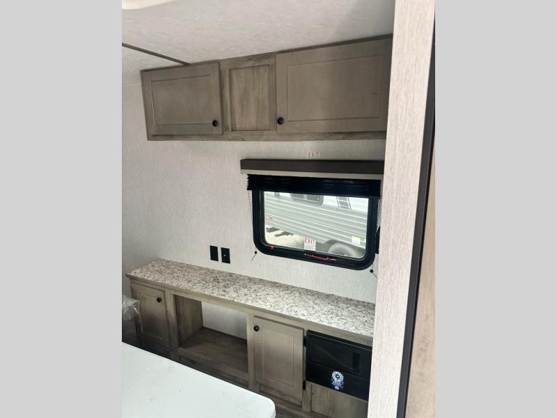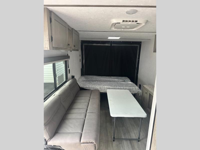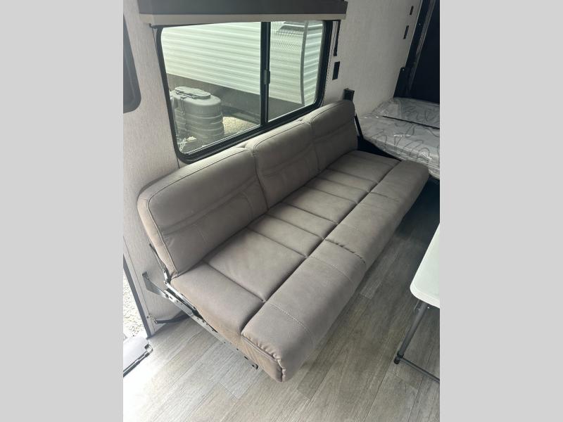 Get ready for a great camping experience where you can take along your favorite ride-on toys, kayaks, or other items that you may not normally have room to load as this toy hauler features 13' 2" of cargo space that can easily be loaded using the rear ramp door. Once unloaded, set up with the fold-down bed that will make for a great night's rest. There is also a jiffy sofa that can transform into added sleeping space at night. The kitchen amenities will make it easy to create a warm meal, and you can get cleaned up and refreshed in the bathroom with tub/shower and toilet. This unit also includes the Rush Toy Hauler Package with a ramp door, dual cargo loading lights, a magnetic rear bug screen, and four D-rings to secure your toys.