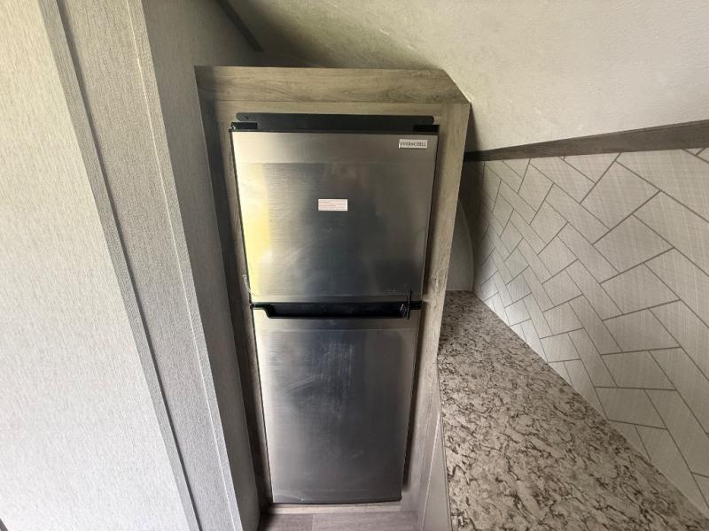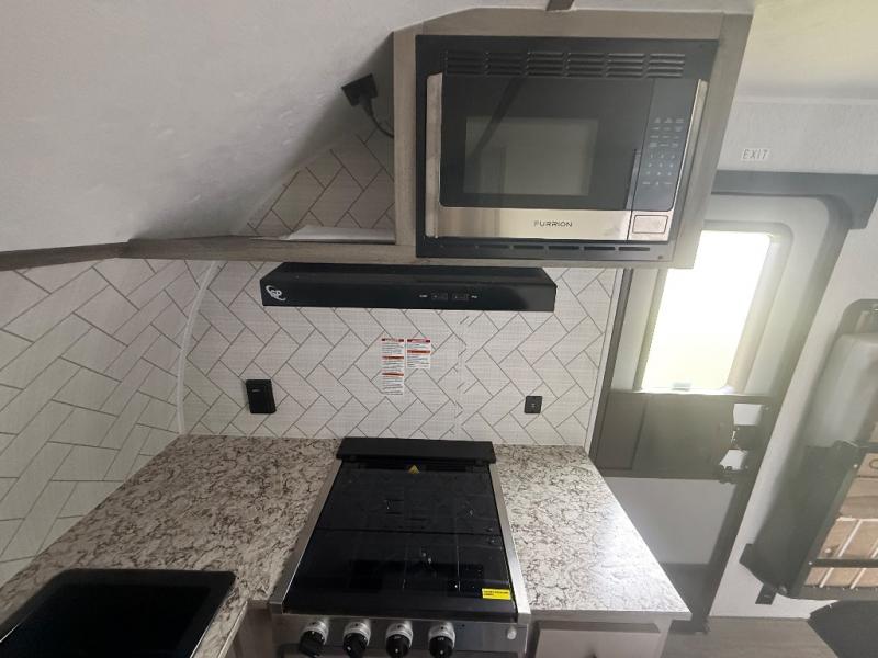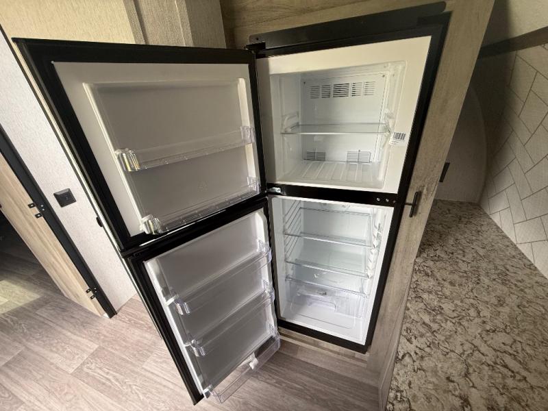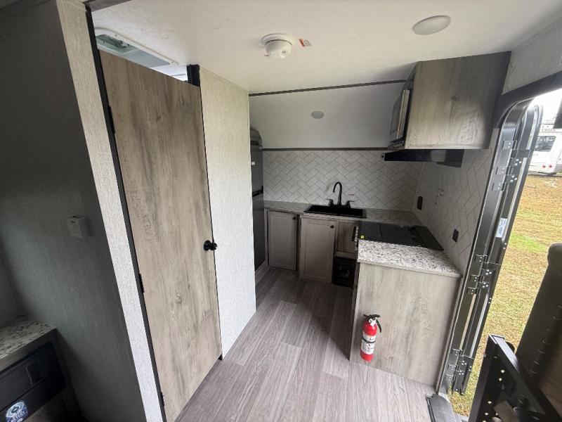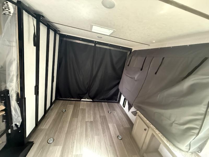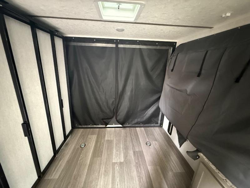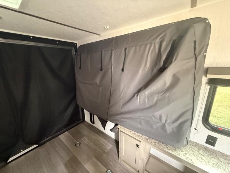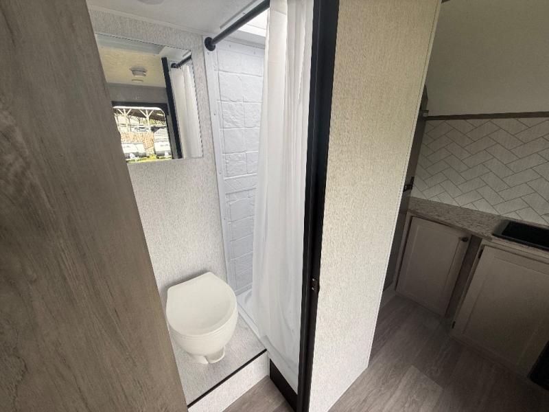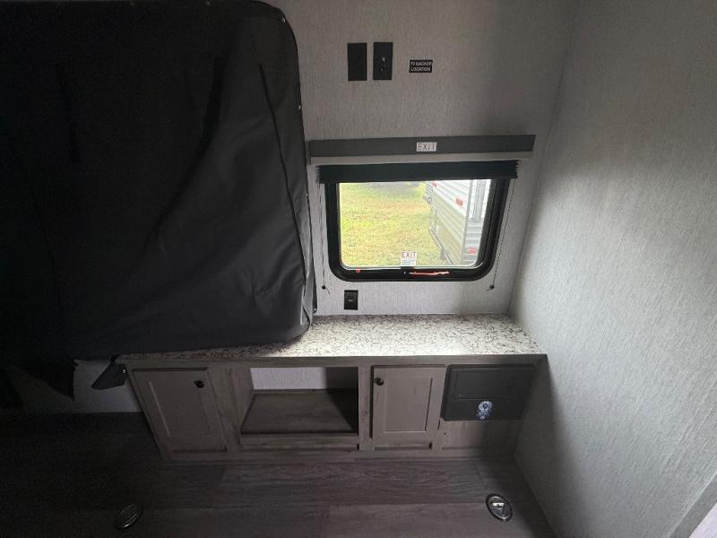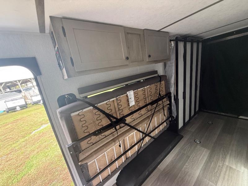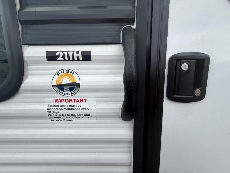 Get ready for a great camping experience where you can take along your favorite ride-on toys, kayaks, or other items that you may not normally have room to load as this toy hauler features 13' 2" of cargo space that can easily be loaded using the rear ramp door. Once unloaded, set up with the fold-down bed that will make for a great night's rest. There is also a jiffy sofa that can transform into added sleeping space at night. The kitchen amenities will make it easy to create a warm meal, and you can get cleaned up and refreshed in the bathroom with tub/shower and toilet. This unit also includes the Rush Toy Hauler Package with a ramp door, dual cargo loading lights, a magnetic rear bug screen, and four D-rings to secure your toys.