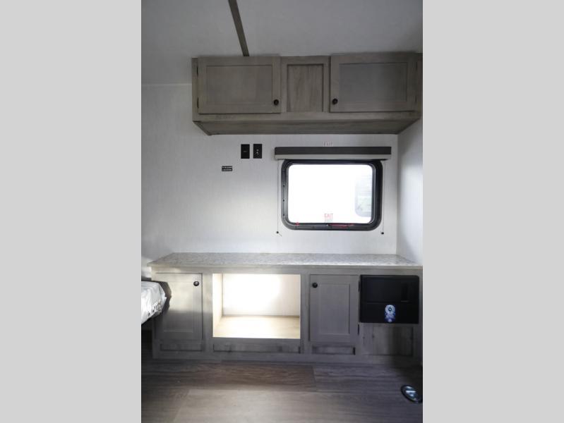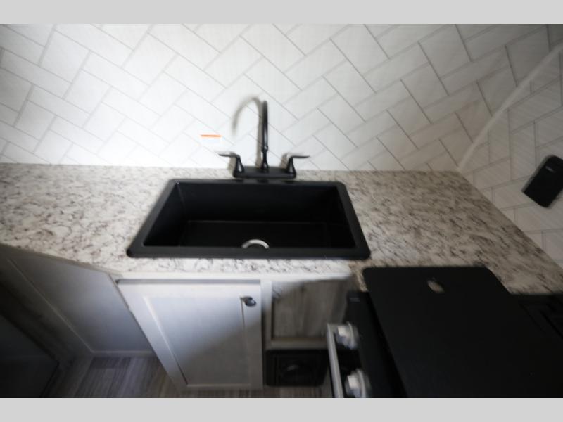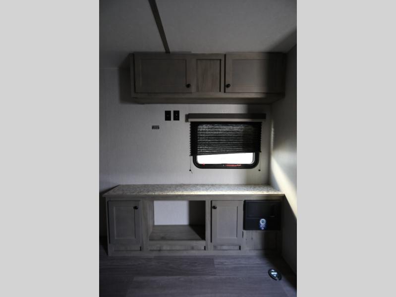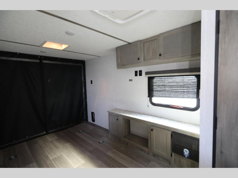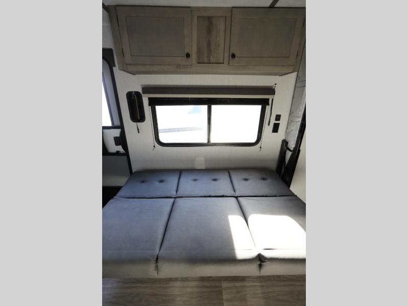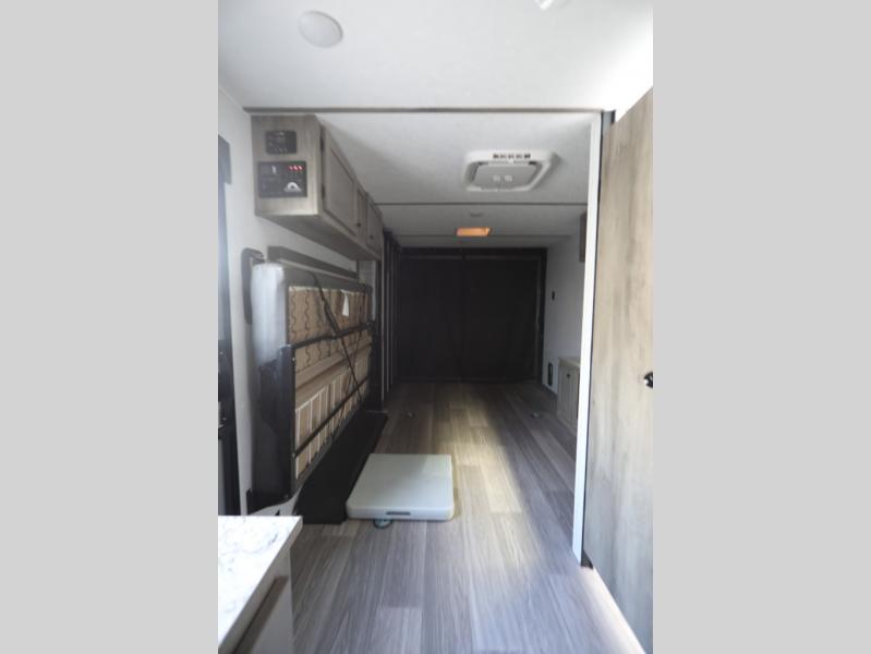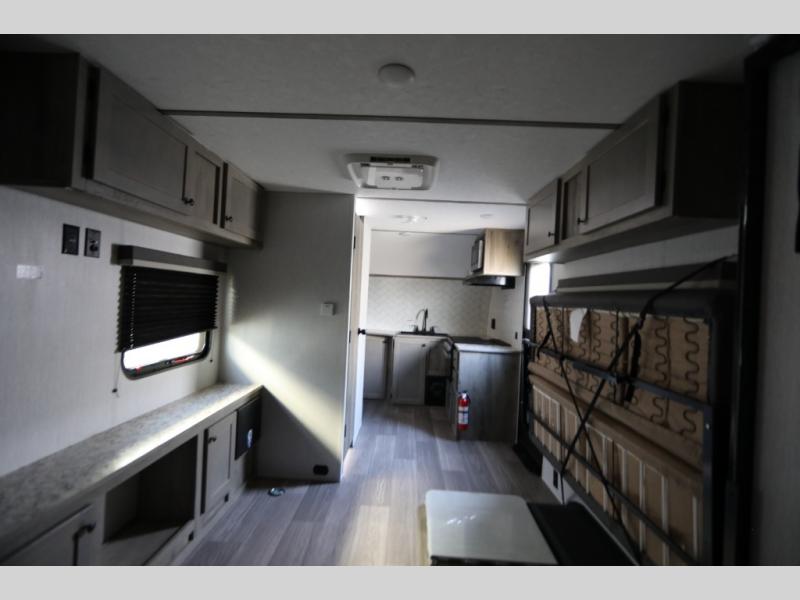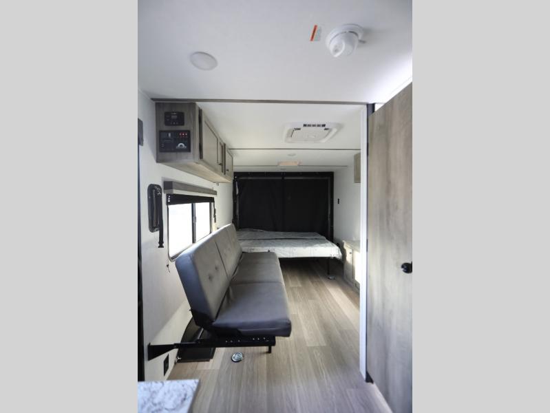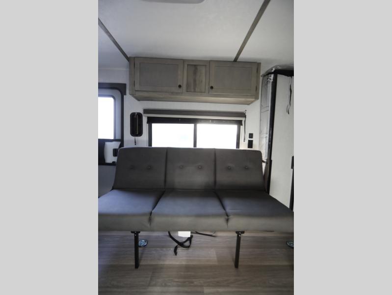 Get ready for a great camping experience where you can take along your favorite ride-on toys, kayaks, or other items that you may not normally have room to load as this toy hauler features 13' 2" of cargo space that can easily be loaded using the rear ramp door. Once unloaded, set up with the fold-down bed that will make for a great night's rest. There is also a jiffy sofa that can transform into added sleeping space at night. The kitchen amenities will make it easy to create a warm meal, and you can get cleaned up and refreshed in the bathroom with tub/shower and toilet. This unit also includes the Rush Toy Hauler Package with a ramp door, dual cargo loading lights, a magnetic rear bug screen, and four D-rings to secure your toys.