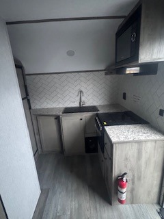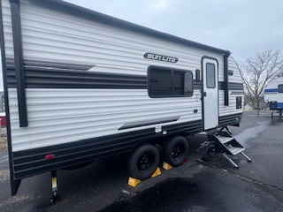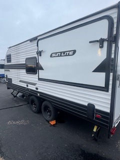 You can trust the build and enjoy your experience with any one of these Sunset Park RV Sun Lite travel trailers or toy haulers! Their aerodynamic profile is not only easy to haul, but also saves on fuel. They are built to withstand years of traveling even though they are lightweight with a diamond plate rock guard, a one piece PVC roof membrane, Dexter Spring-Leaf axles, and tinted safety glass windows. Some comfort standards you are sure to enjoy are the two-burner stove top range with hood, light and fan, plus the refrigerator and microwave, and an outside shower to help keep the dirt outdoors where it belongs.